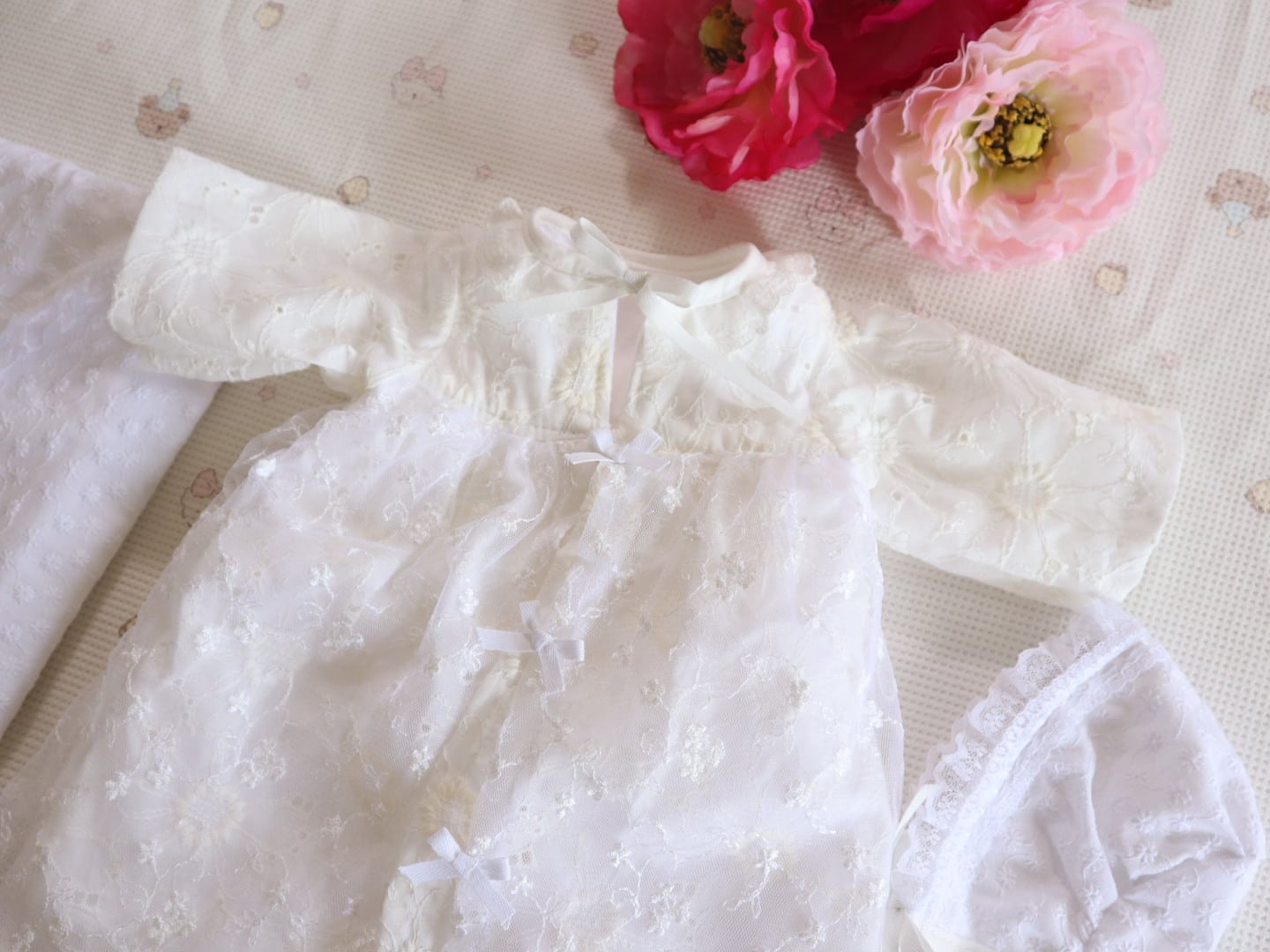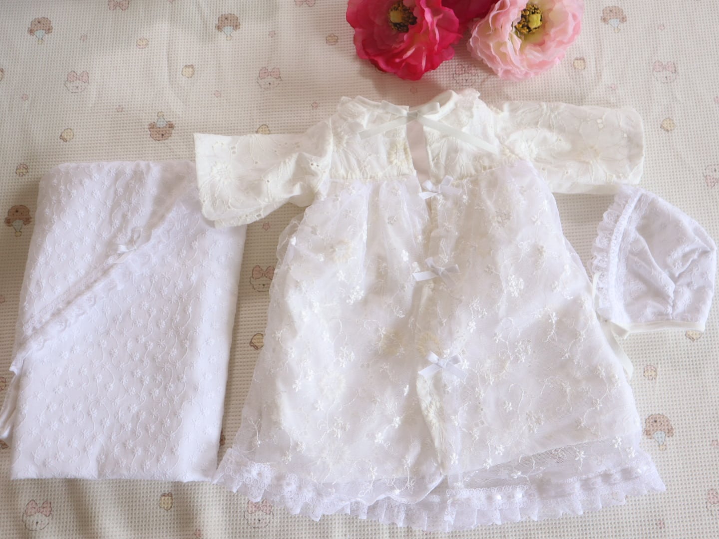 生地:コットン生地(綿100%) 、ポリエステル(ベビードレス表地に使用)、フランネル、エンゼルレース(ポリエステル製)