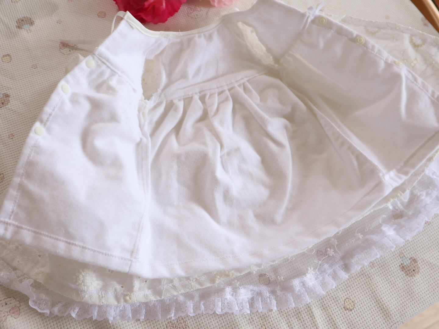 ・ベビードレス(ホワイト色、大きめの花柄、フランネル)