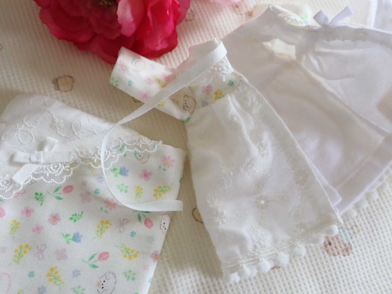 ・ベビードレス(表…レース、花柄プードル柄、裏…フランネル)