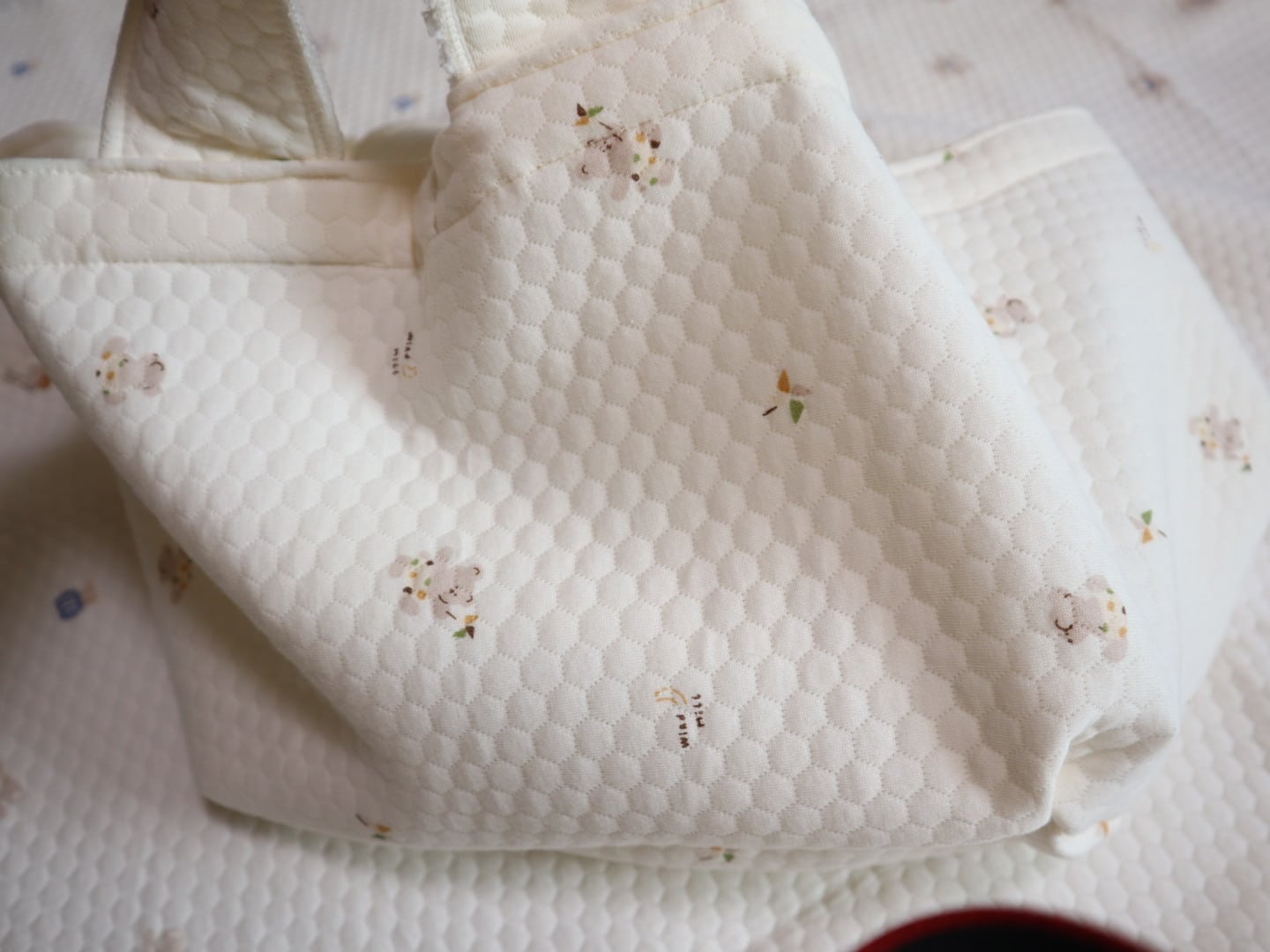 (柔らかくてもちもちした生地となります。くまの刺繍があります)