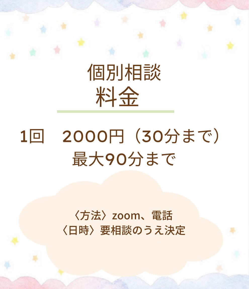 また、個別相談の時間の短縮による御代金の減額なども一切行っておりませんので予めご了承くださいませ。
