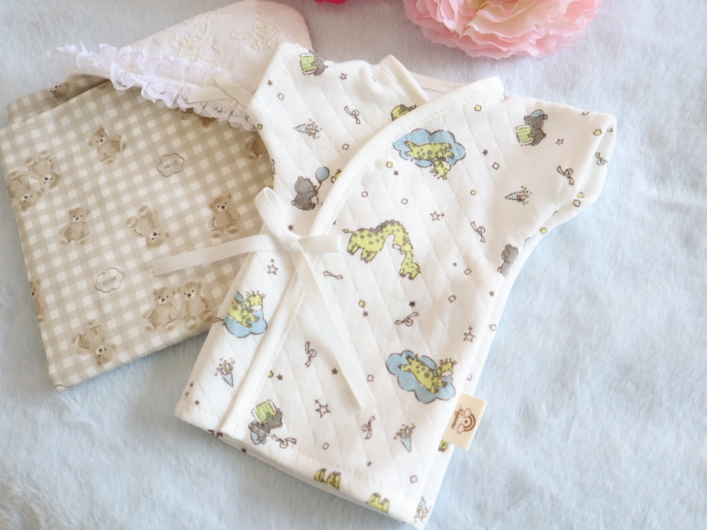 ・肌着(ガーゼニット、きりんとくまほし柄)