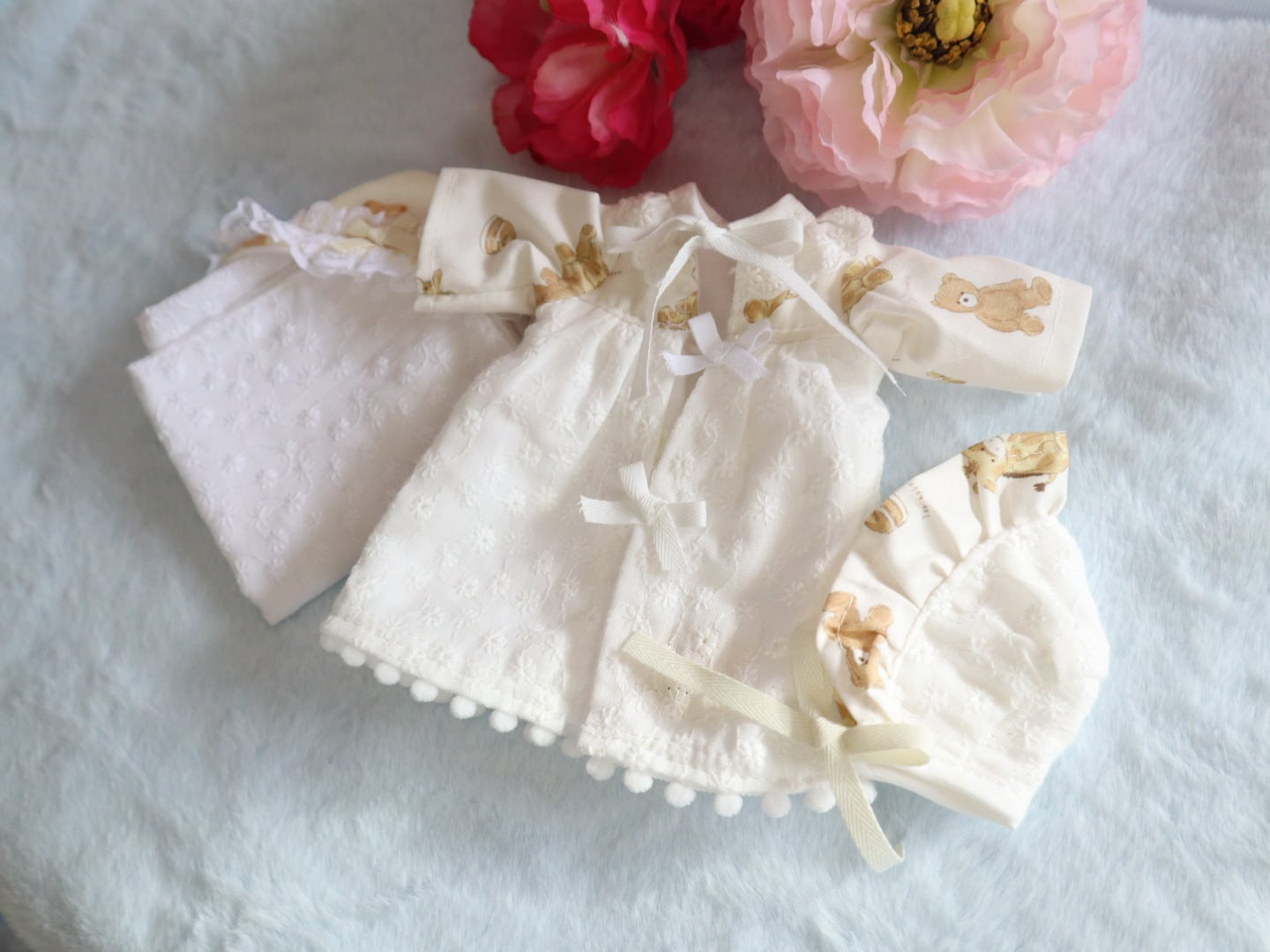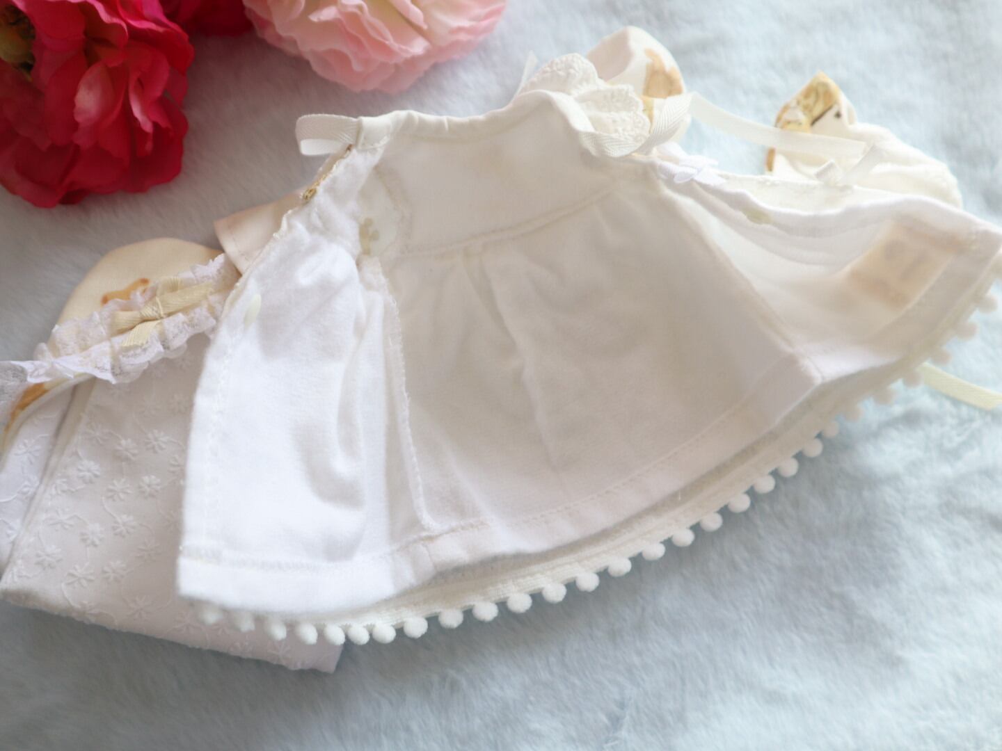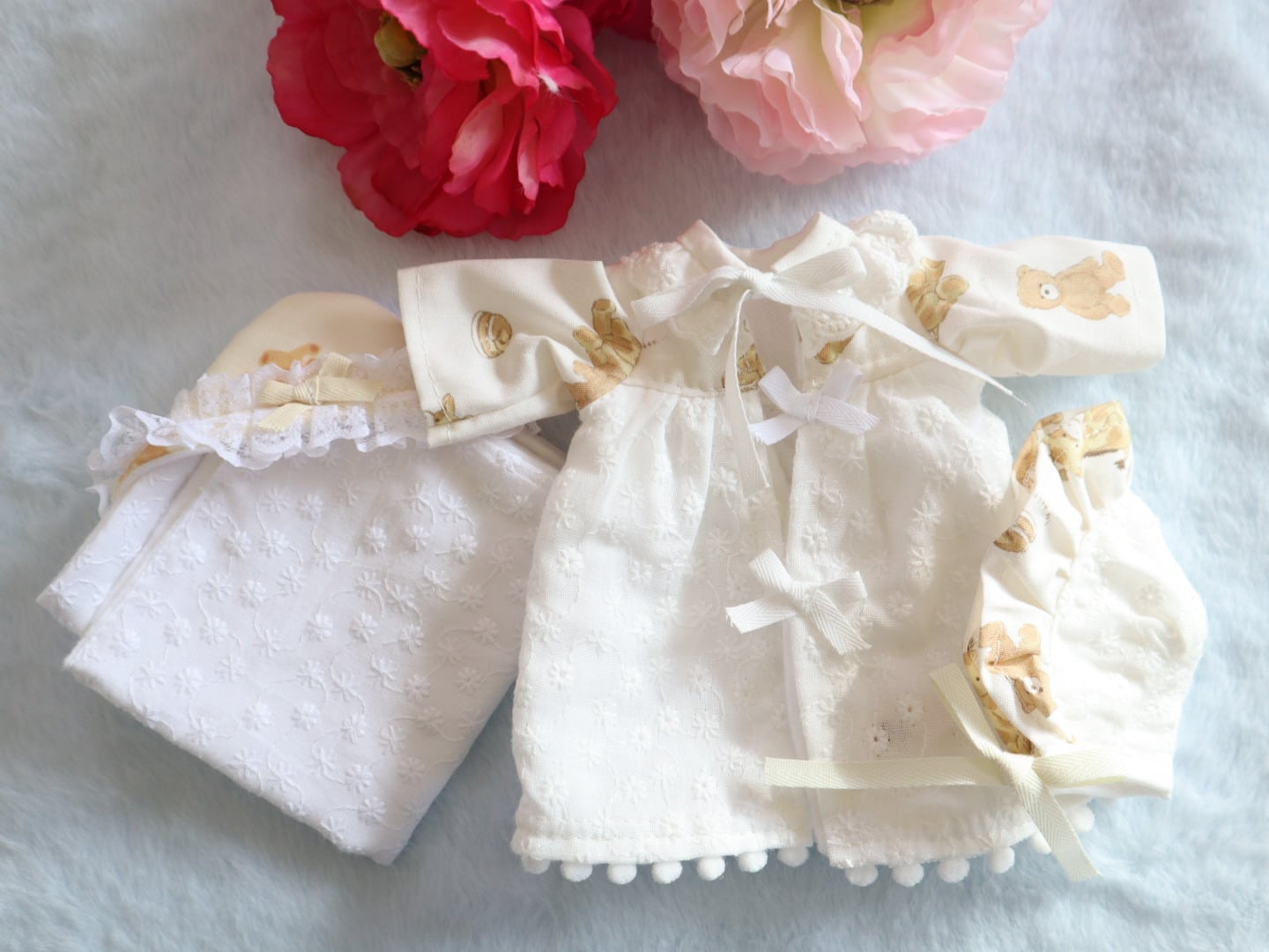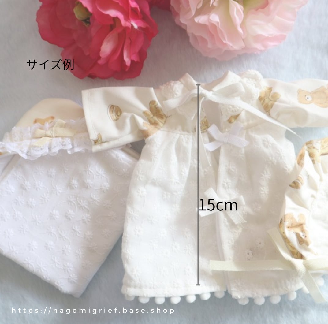 ・ベビードレス(表…シーチング、くまときりん、レース、裏…フランネル)