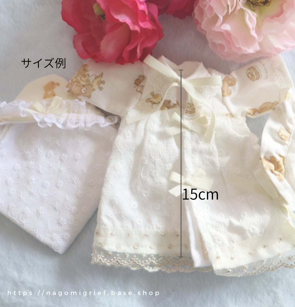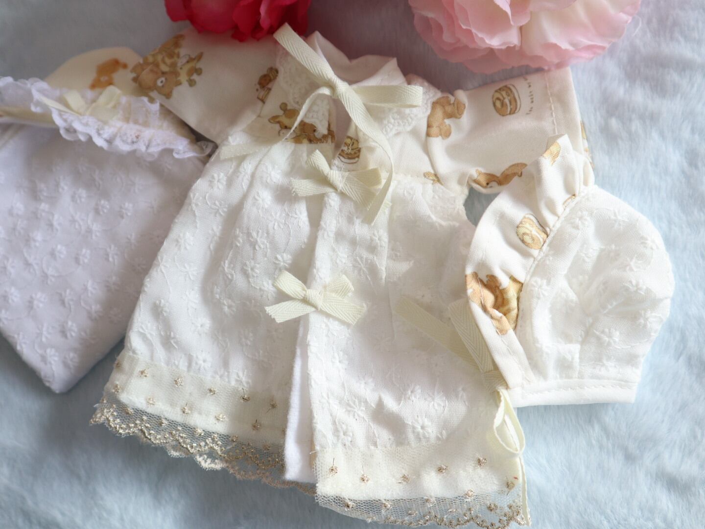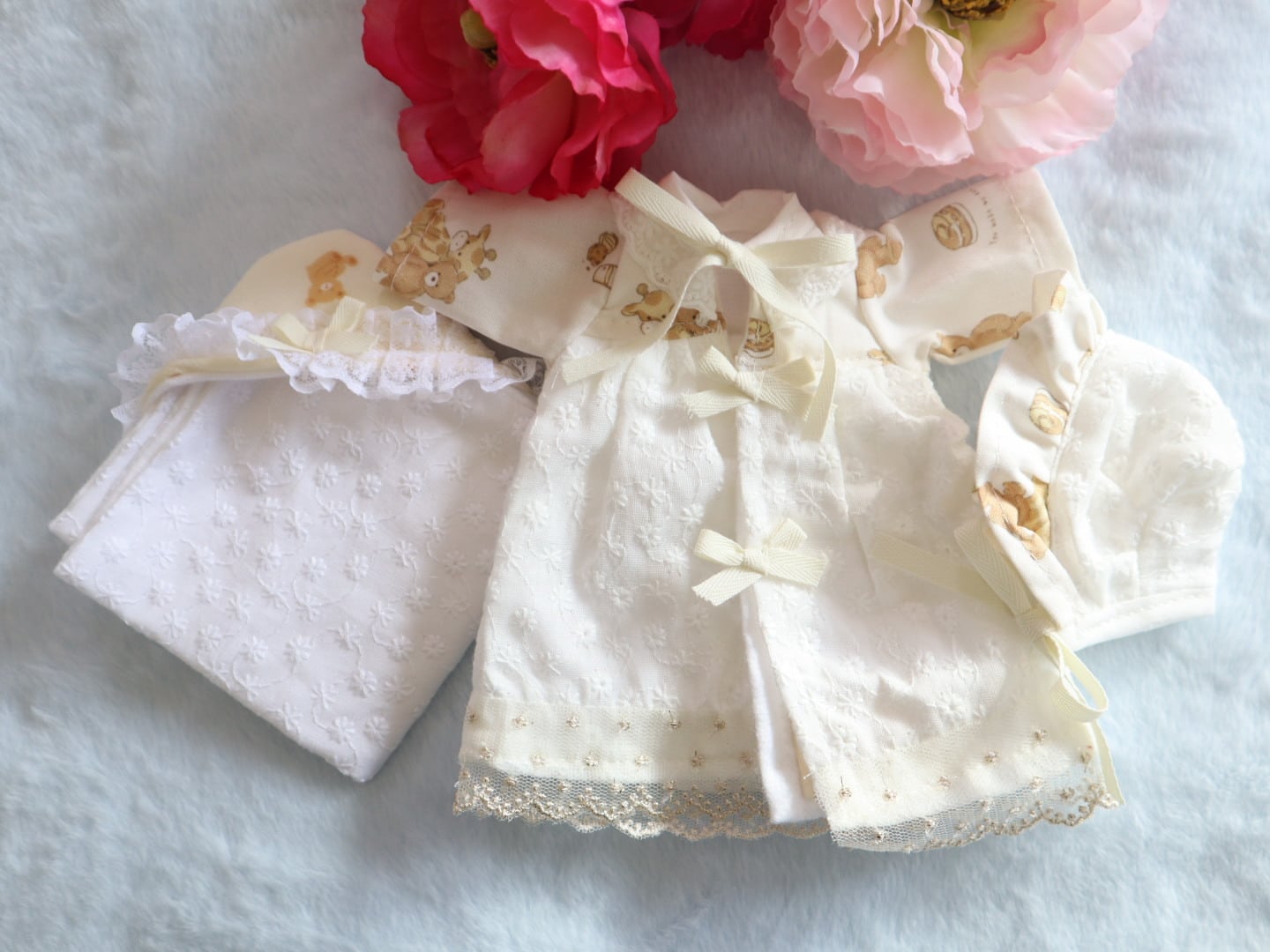 ・ベビードレス(表…シーチング、くまときりん、レース、裏…フランネル)