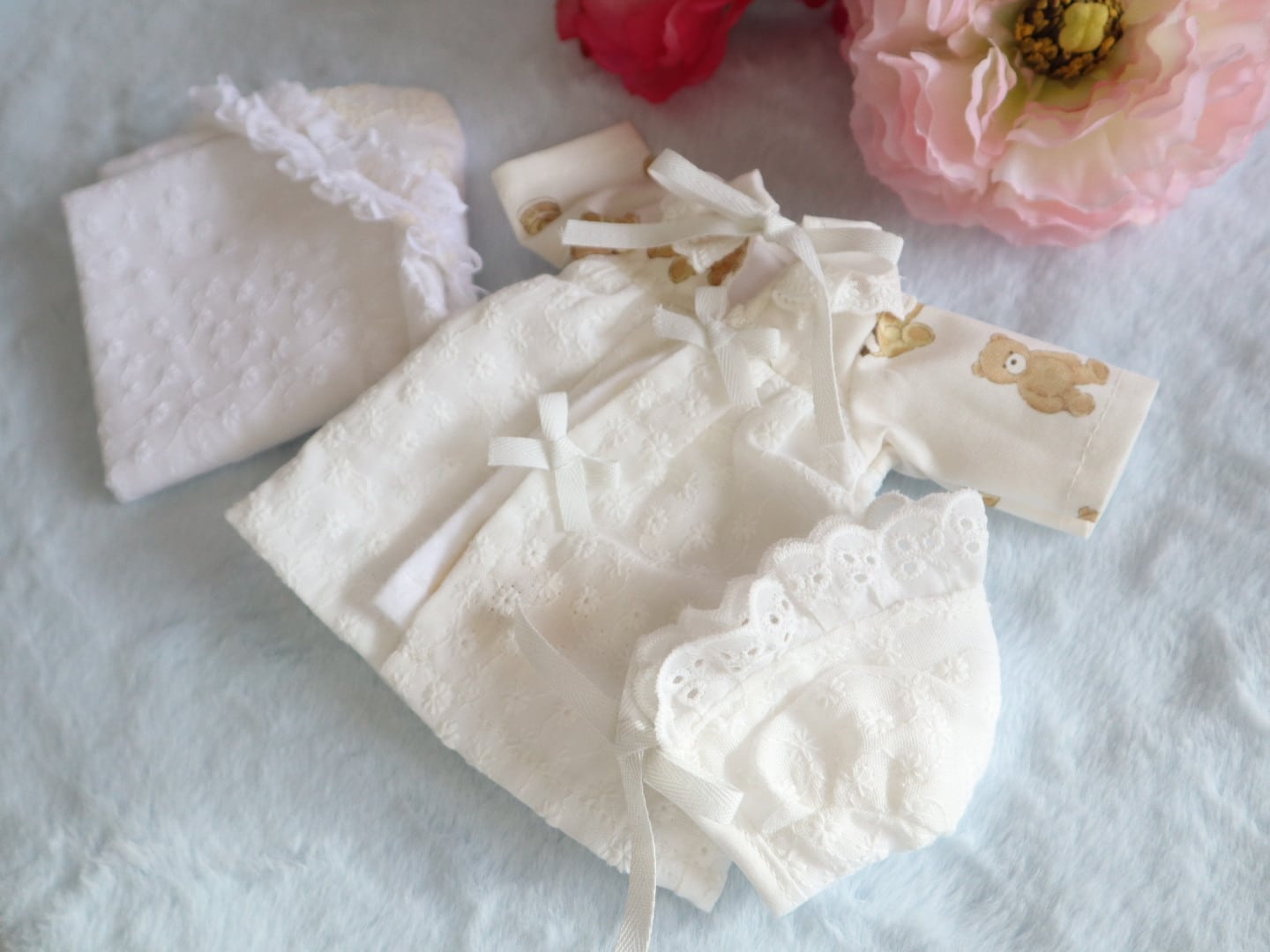 ・ベビードレス(表…シーチング、くまときりん、レース、裏…フランネル)