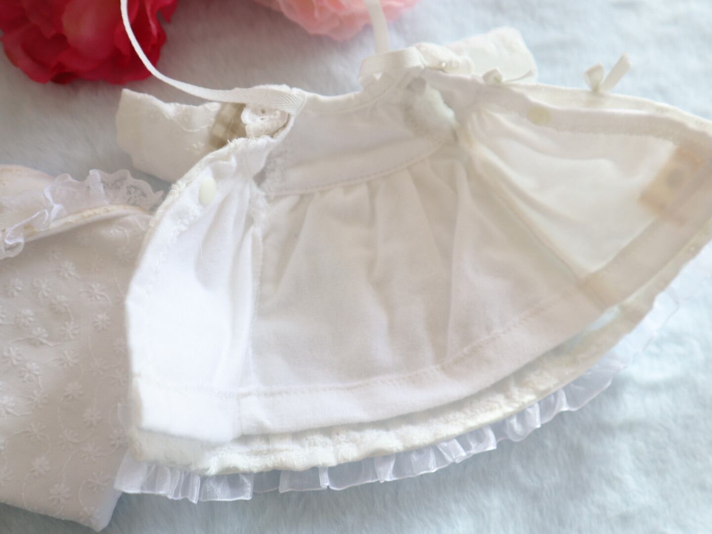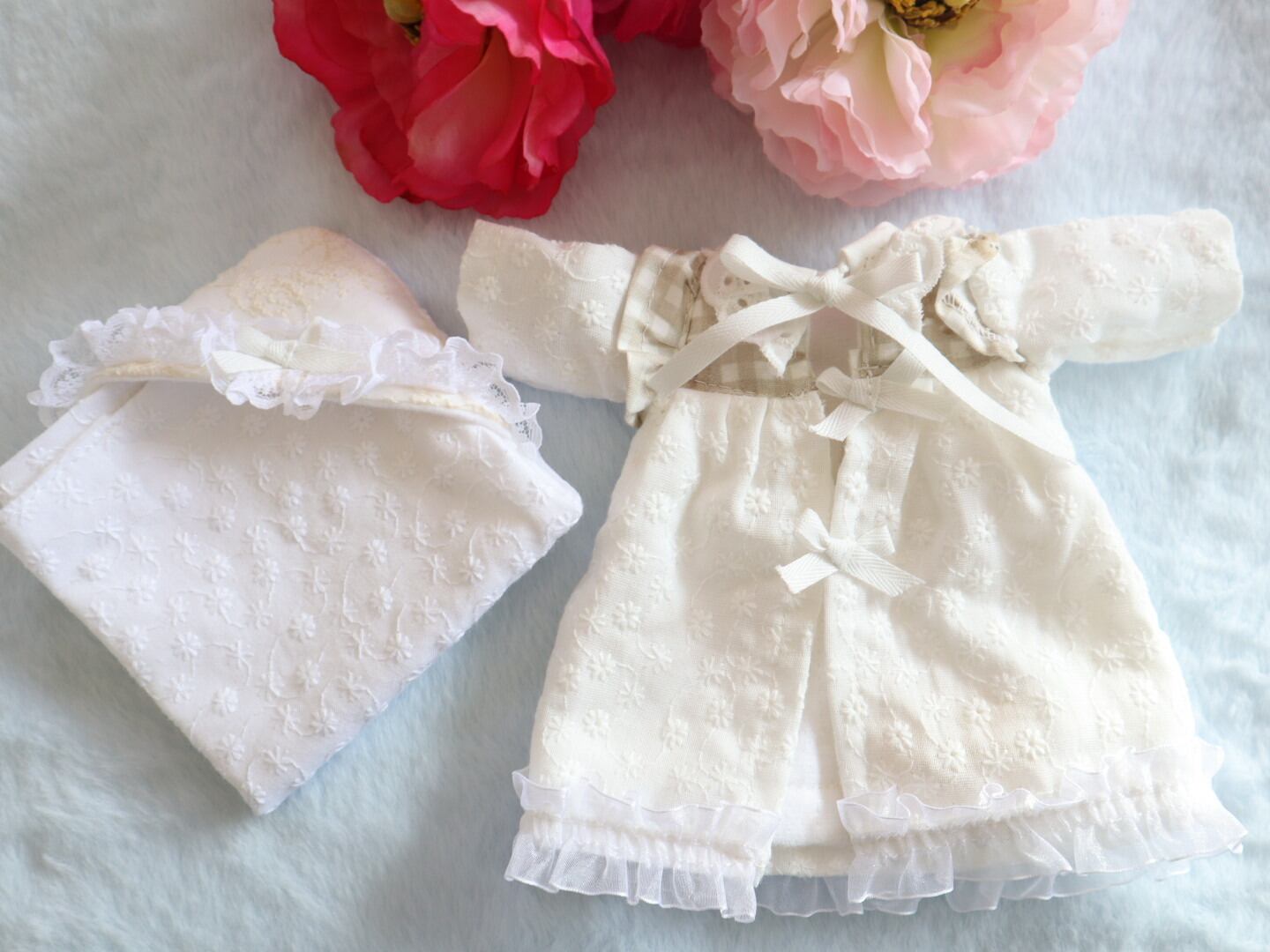 ・ベビードレス(ギンガムチェックくま柄、ホワイトレース)