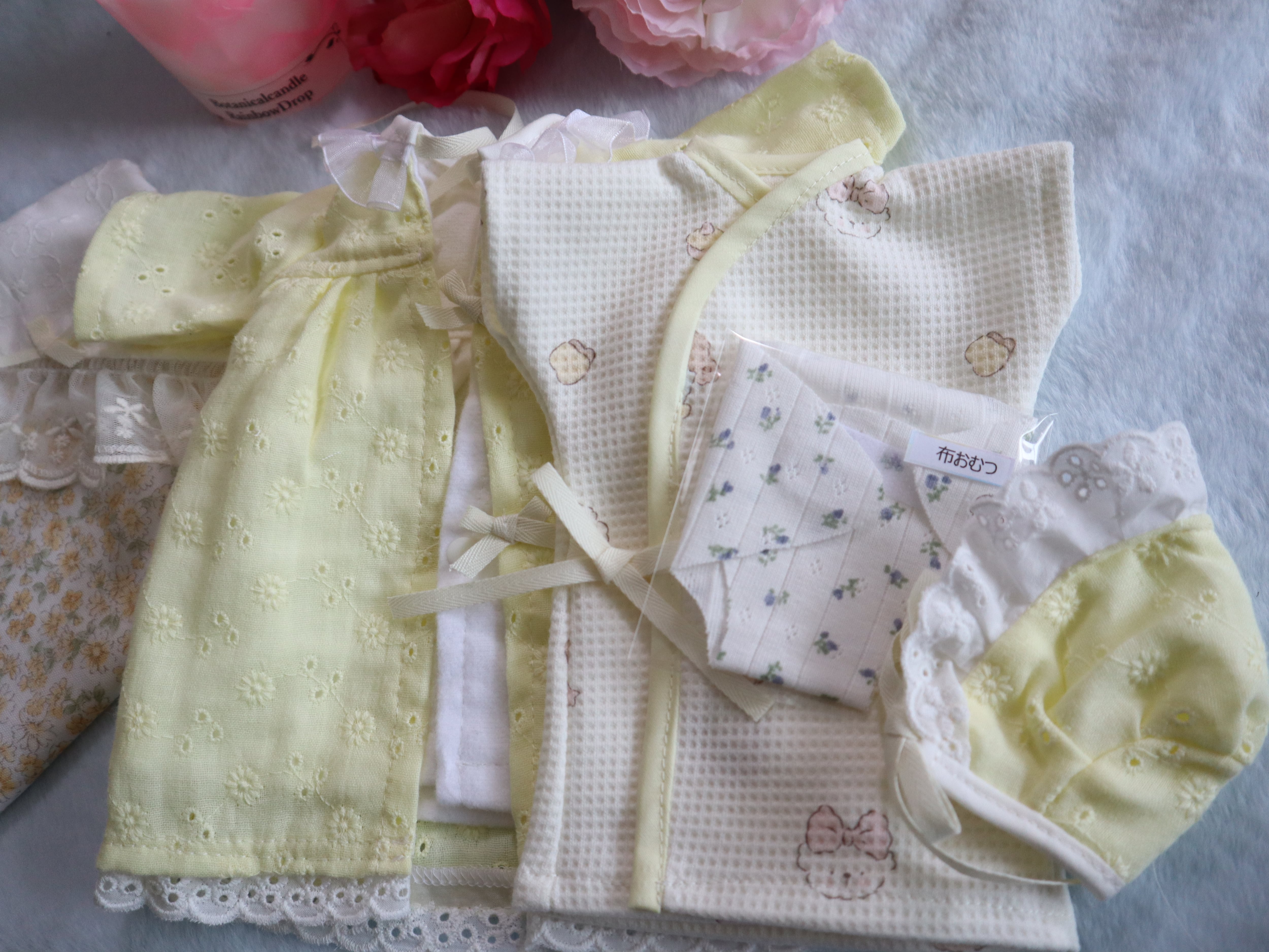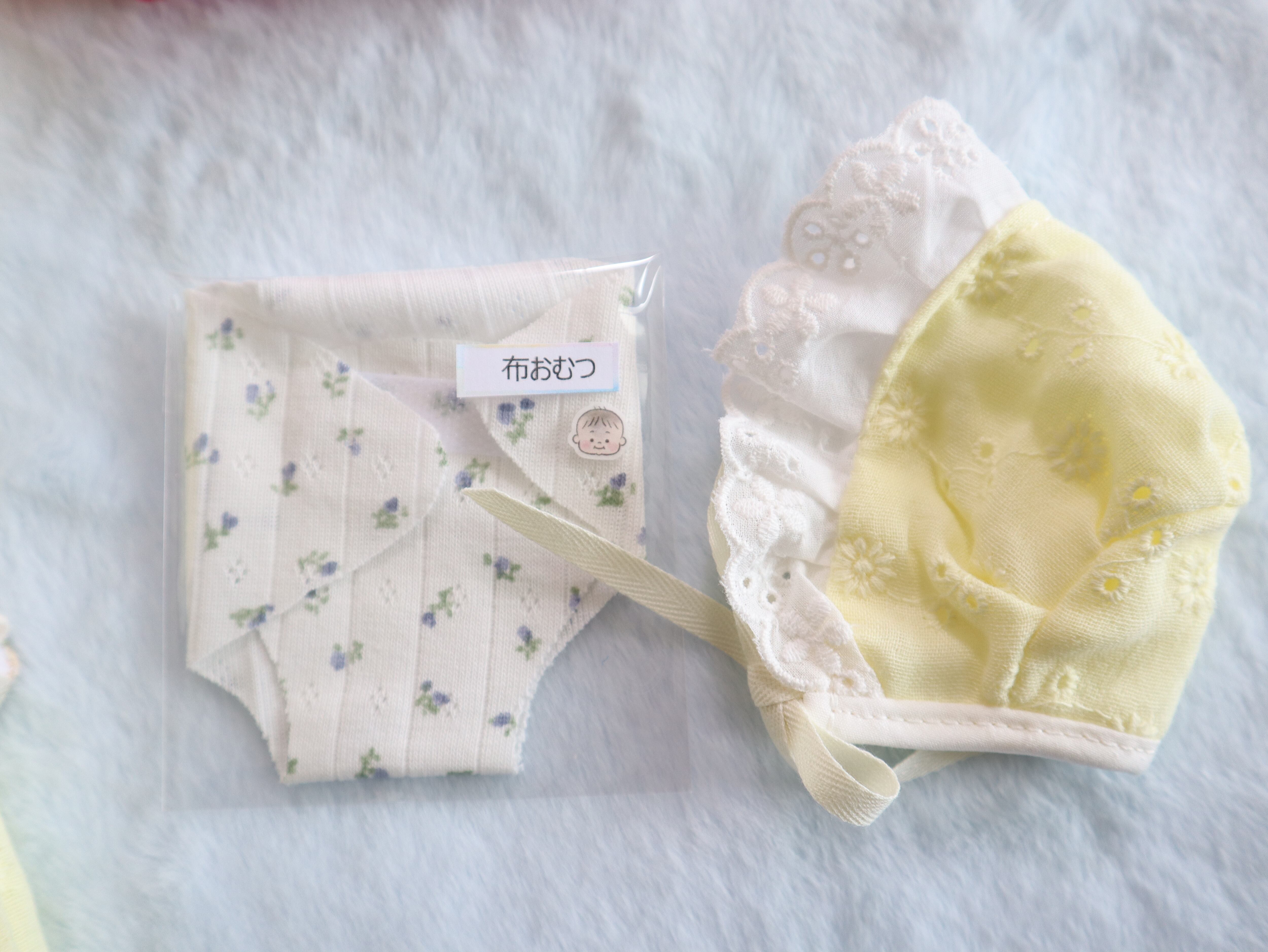 リボン:おくるみ、お帽子に使用しているレースにポリエステルが含まれております。