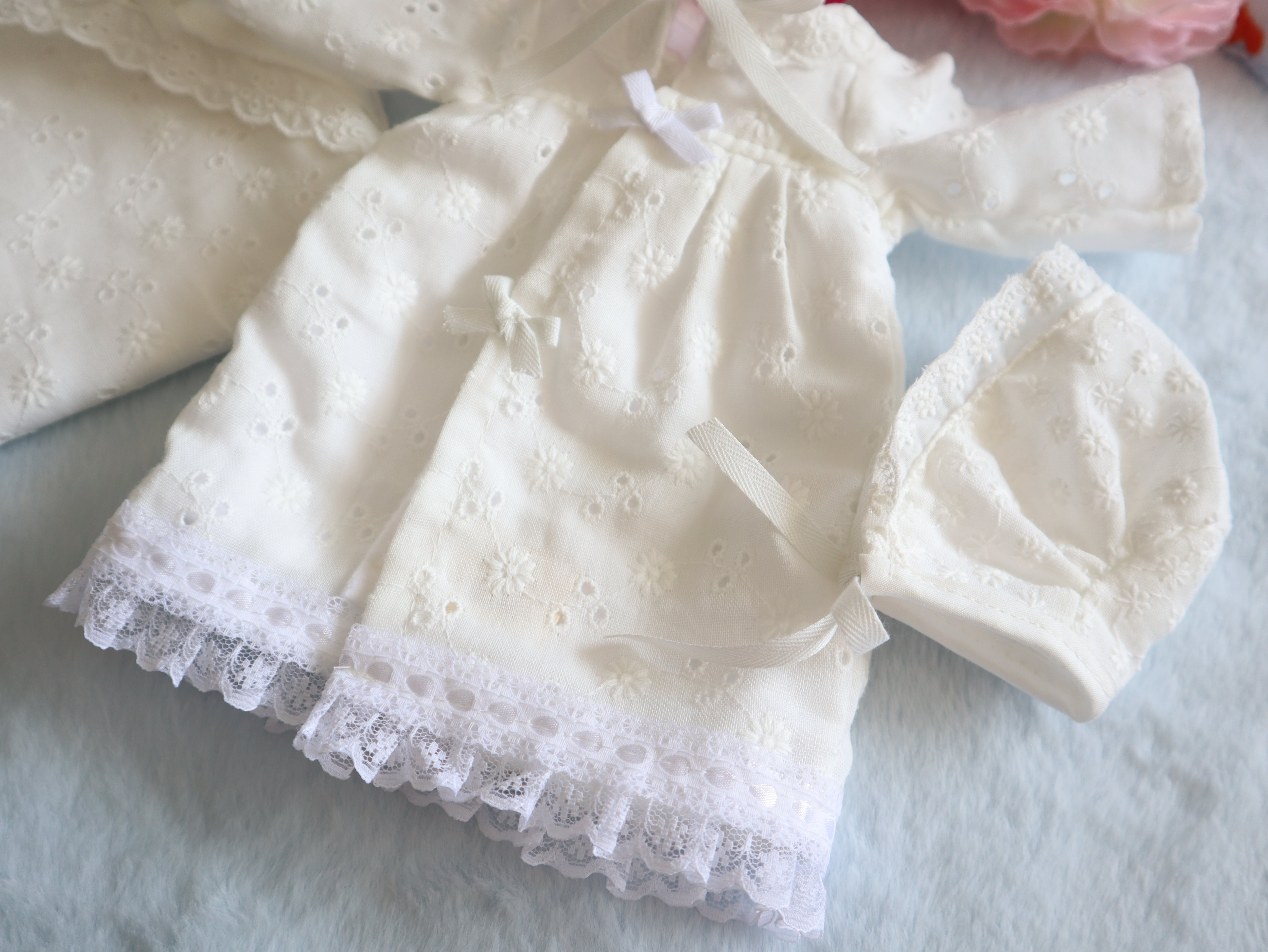 ・ベビードレス(表…レース、小花の刺繍、裏…フランネル)