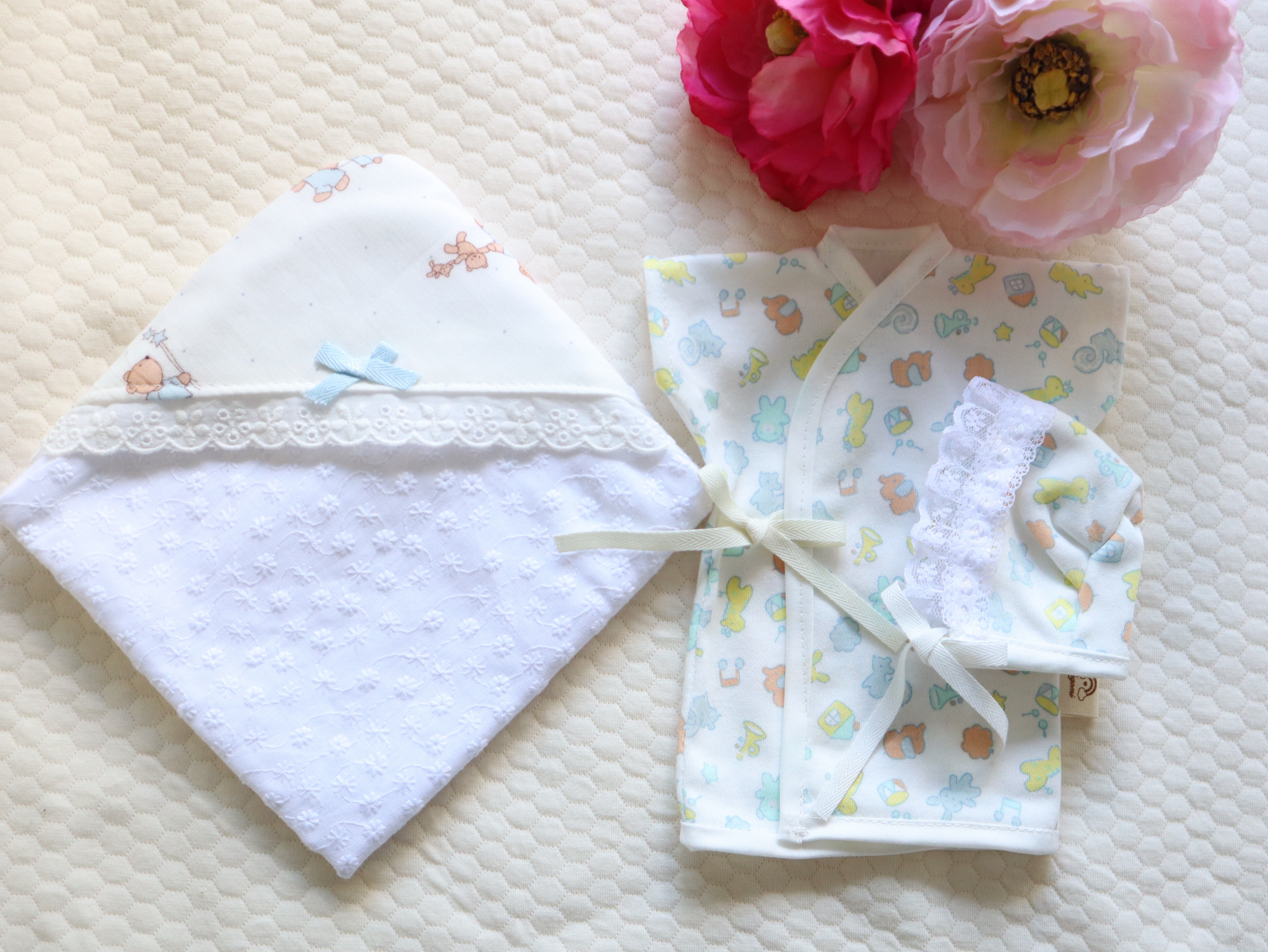 ・おくるみ(フランネル、くま、レース柄)