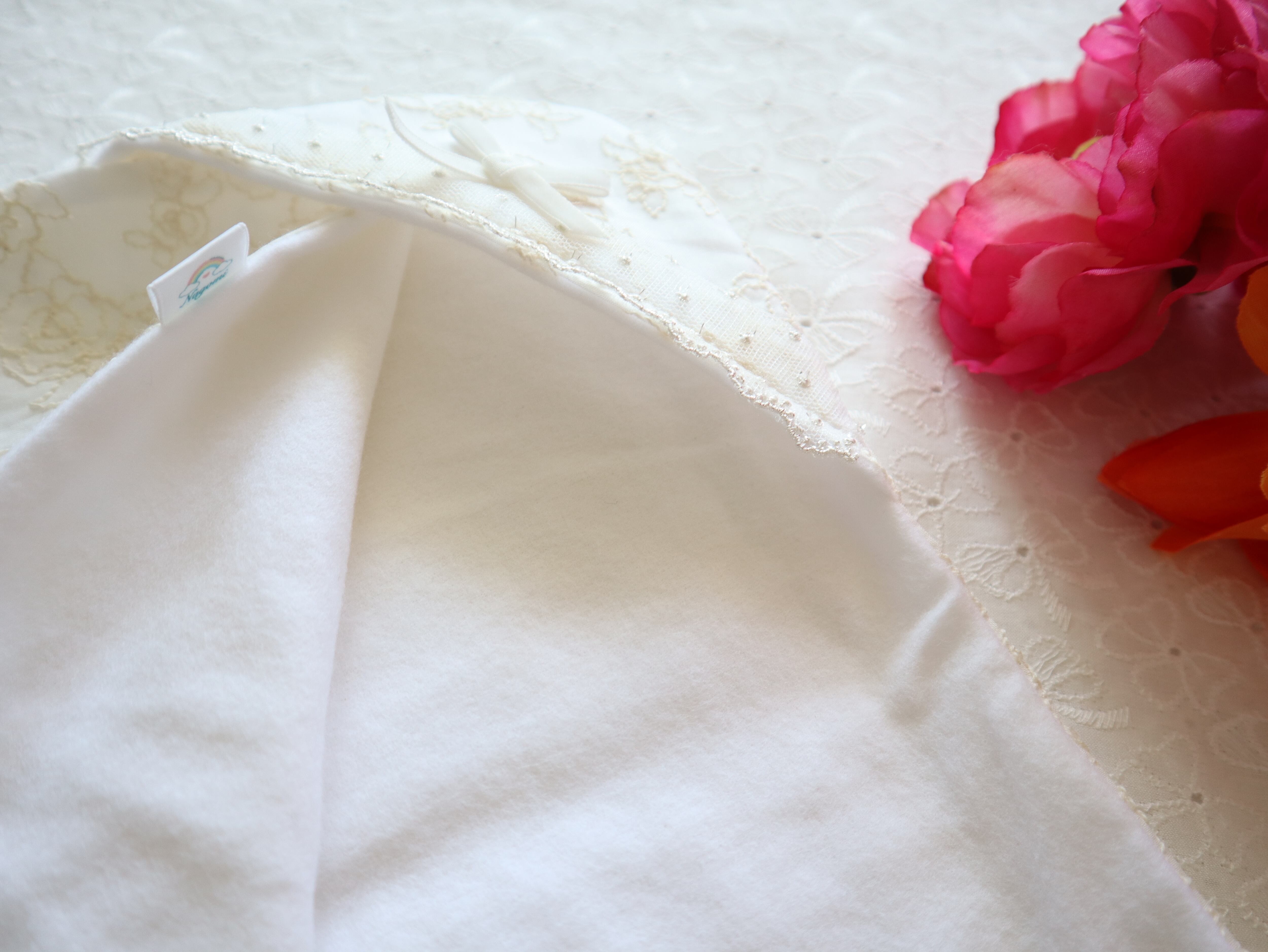 生地:ダブルガーゼ(綿100%) 、おくるみ内側:フランネル