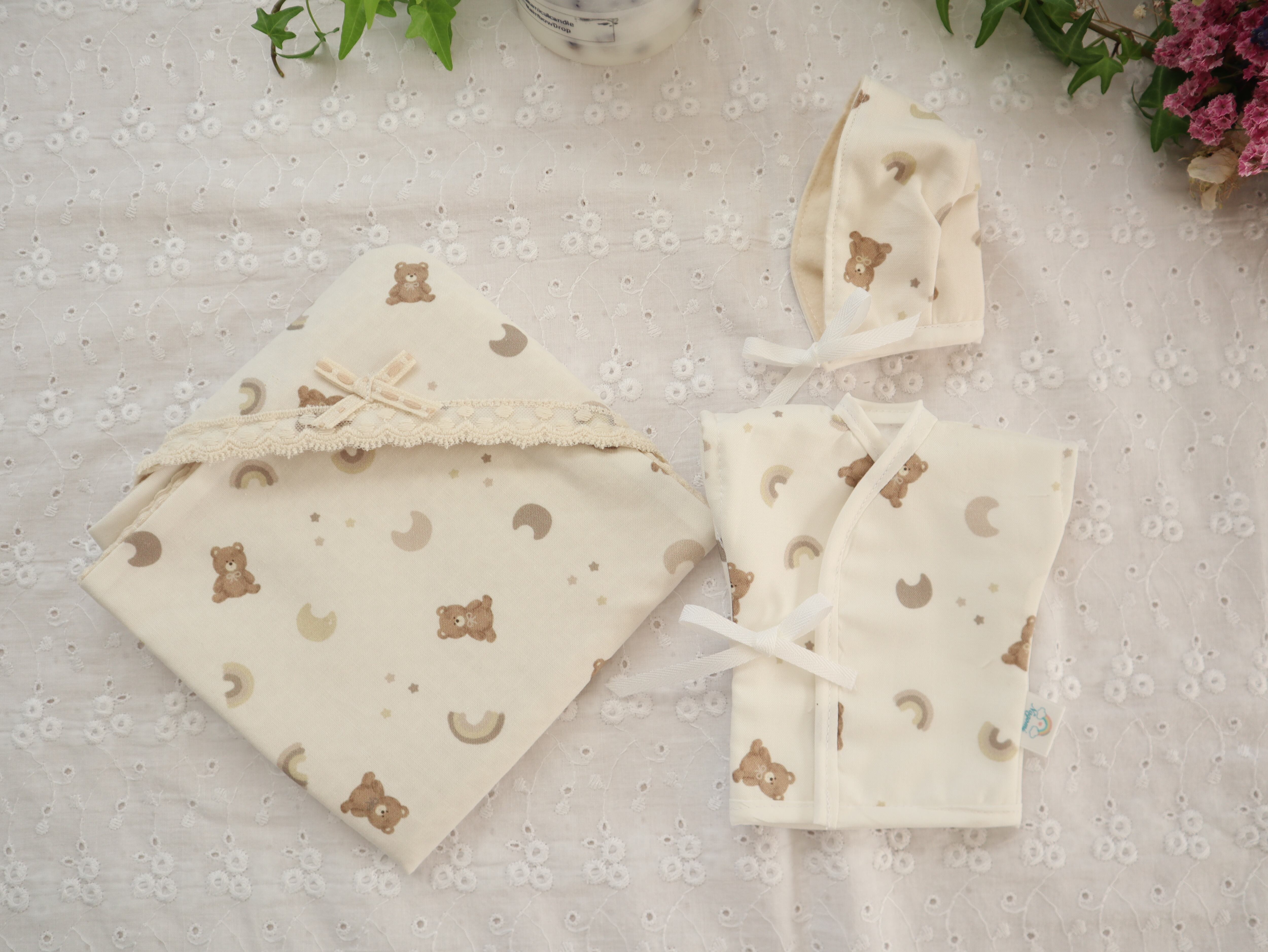 ・おくるみ(くすみアイボリー・くまとにじ柄)