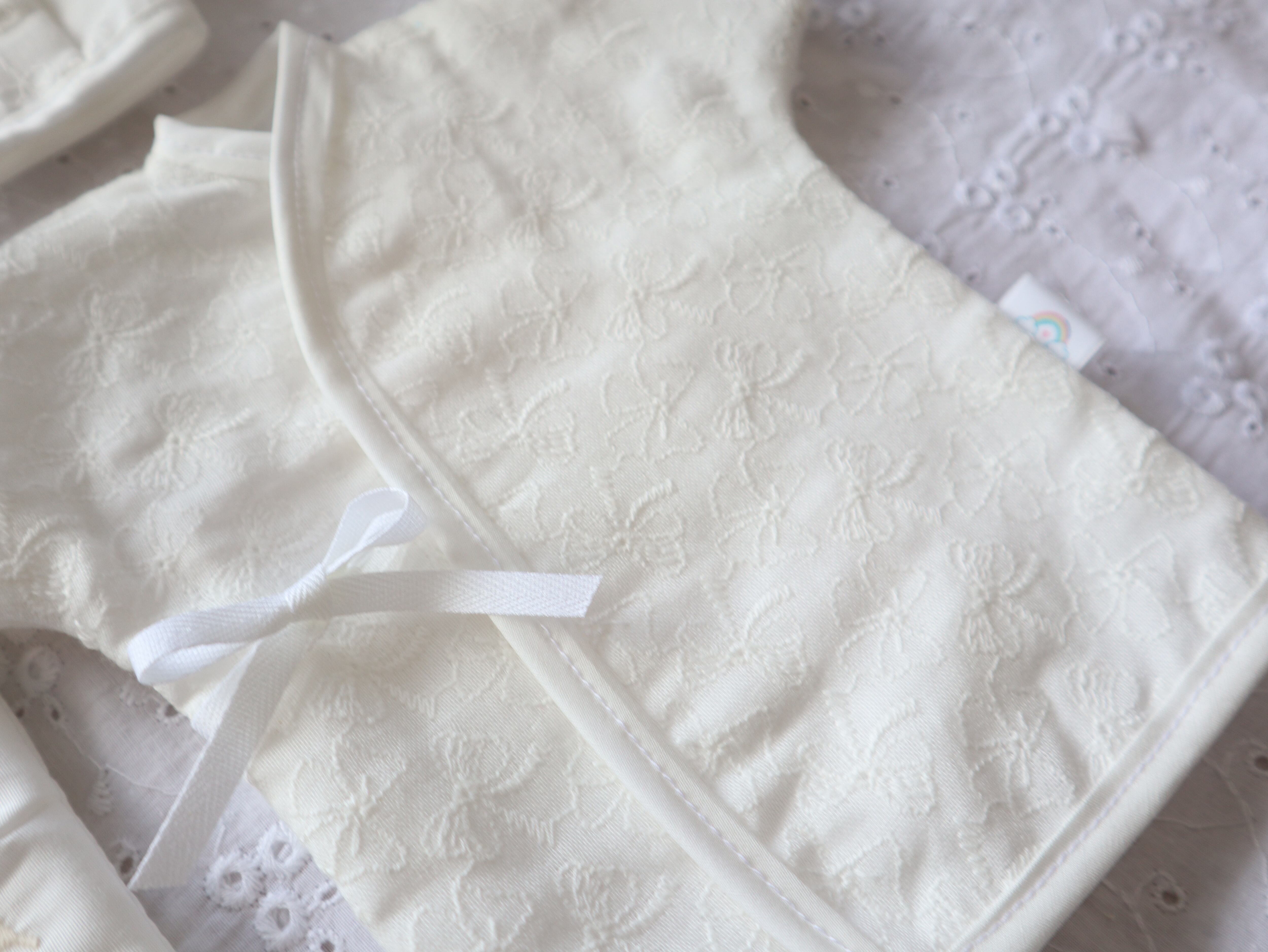 生地:レースガーゼ(綿100%) 、おくるみ内側フランネル生地