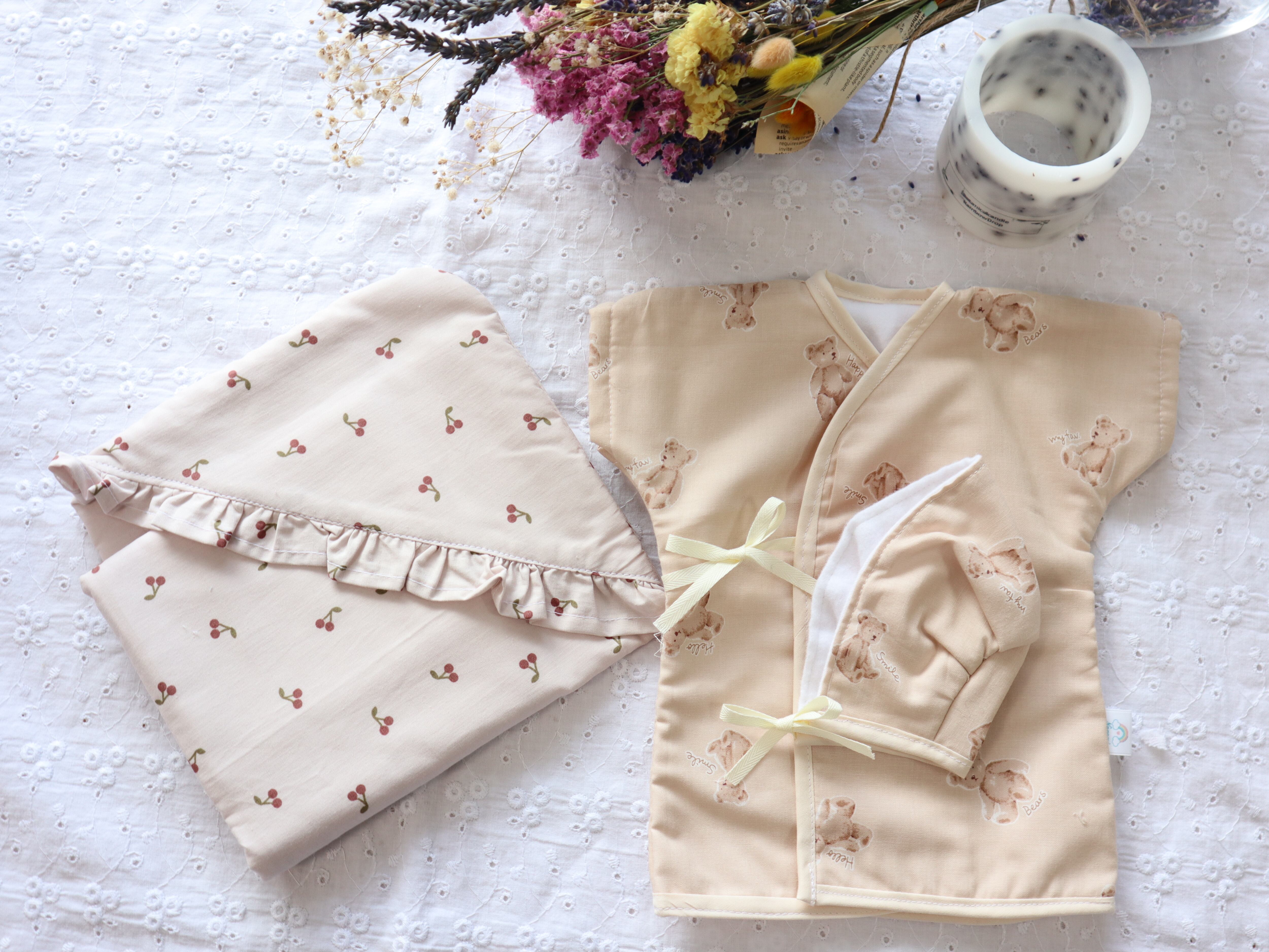・おくるみ(くすみカラー、さくらんぼ柄)
