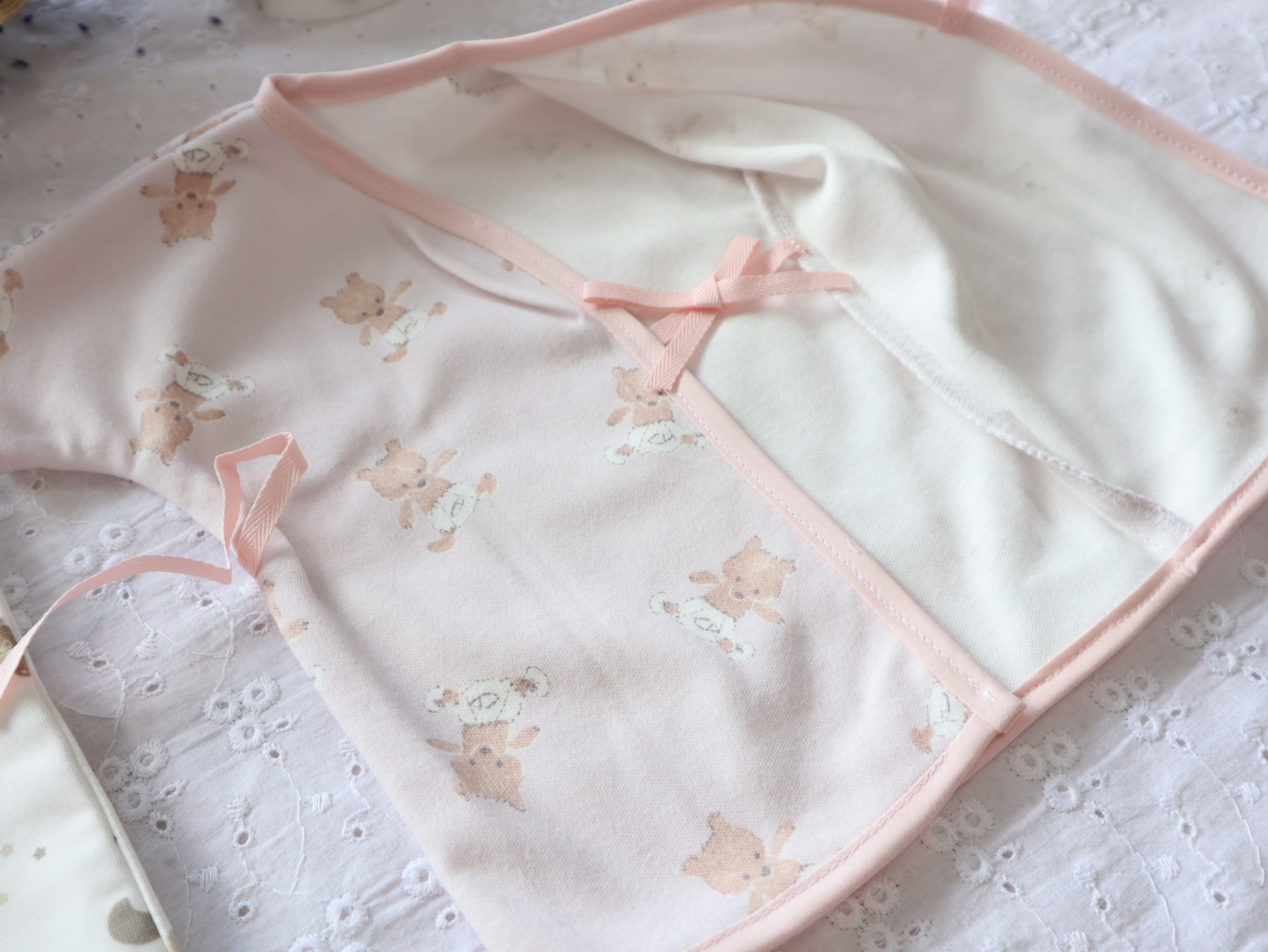 ・ベビー肌着(スムースニット、ベビーピンクくま柄)