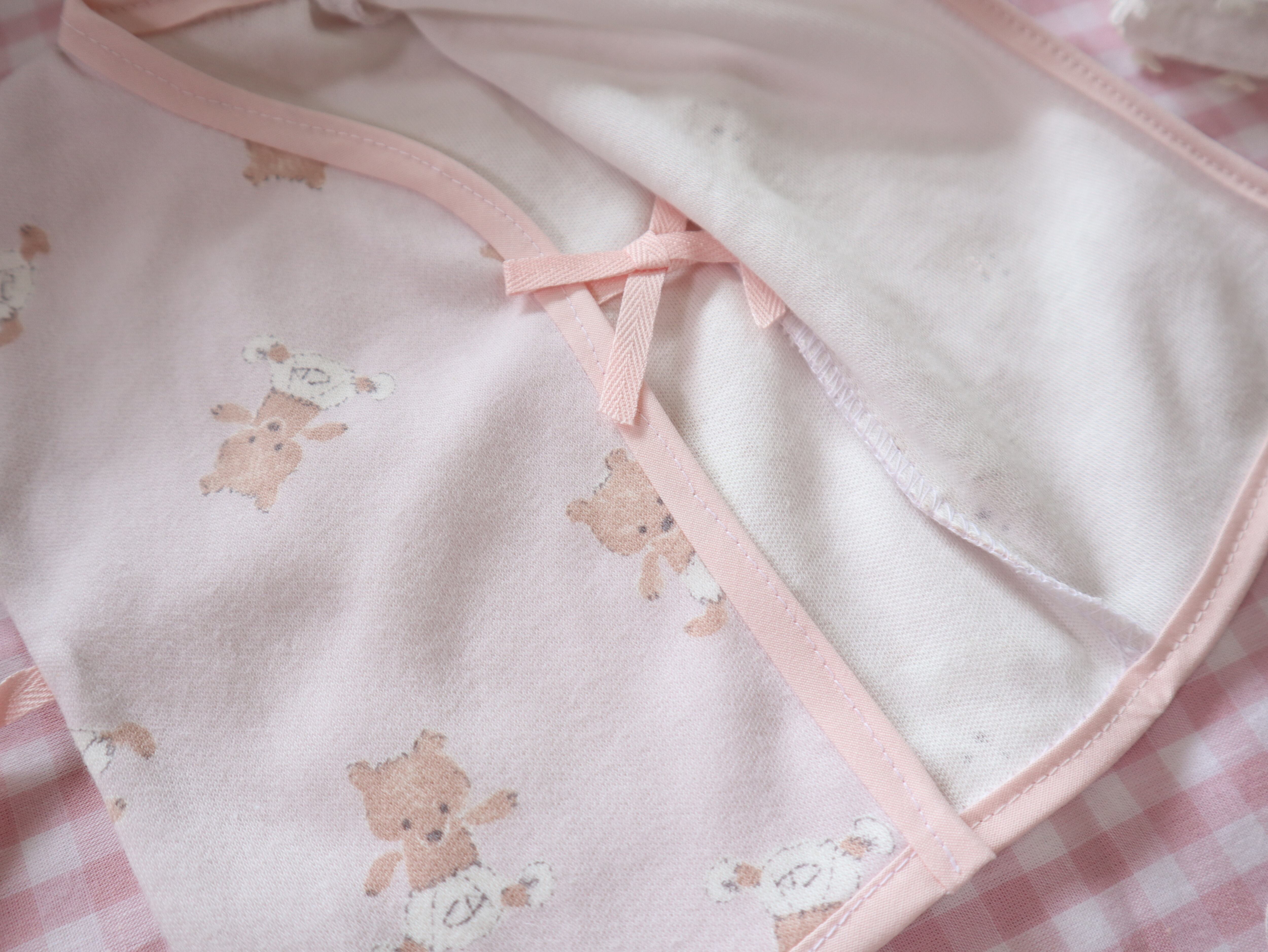 ・ベビードレス(ホワイトレース、くまリバティ柄)紐がピンク