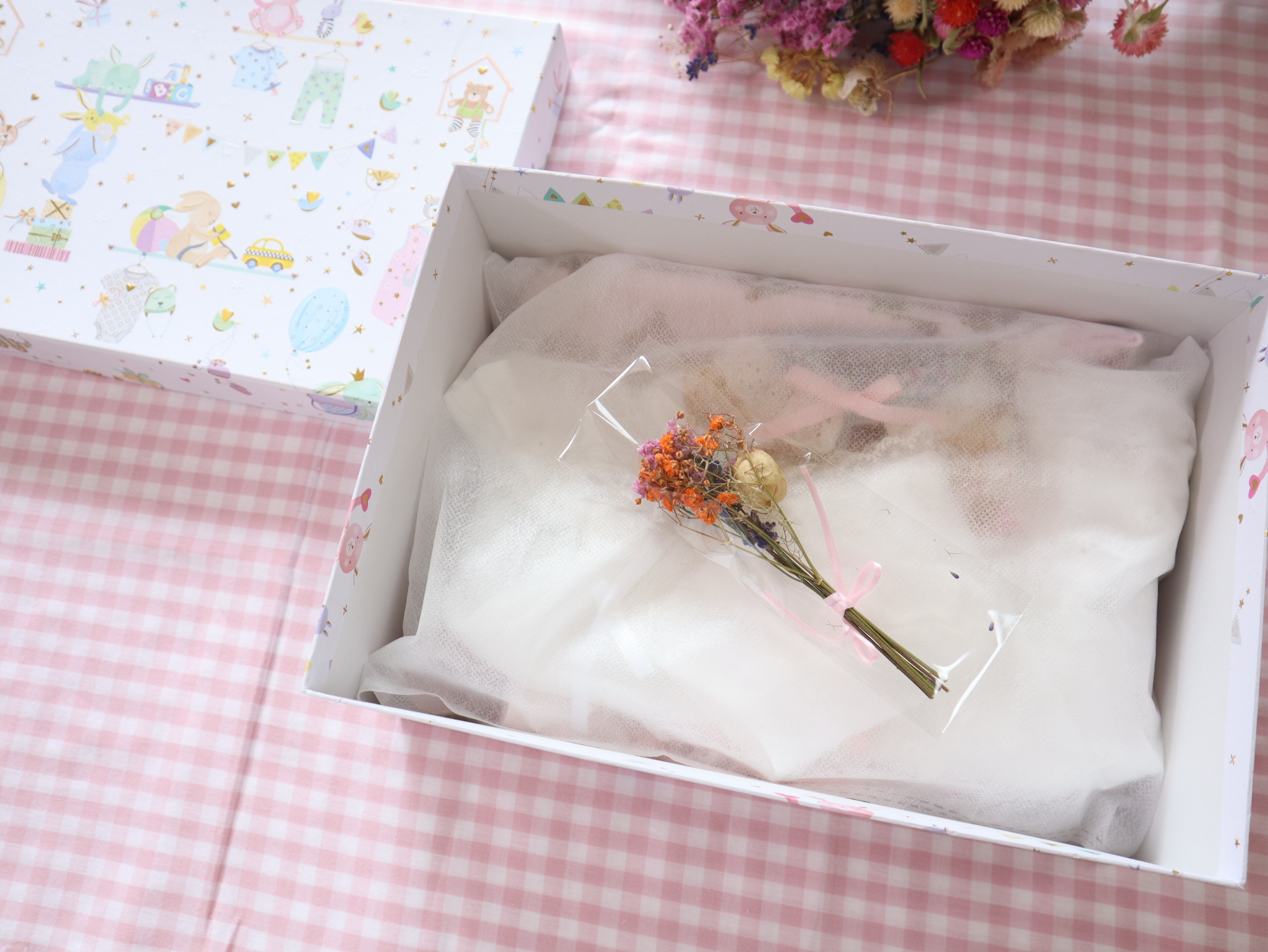 ⚠️ラッピングボックス(メモリアルボックス…赤ちゃんとの思い出のお写真や母子手帳、エコー写真などを収納できるボックスです)は、別途500円かかります。
