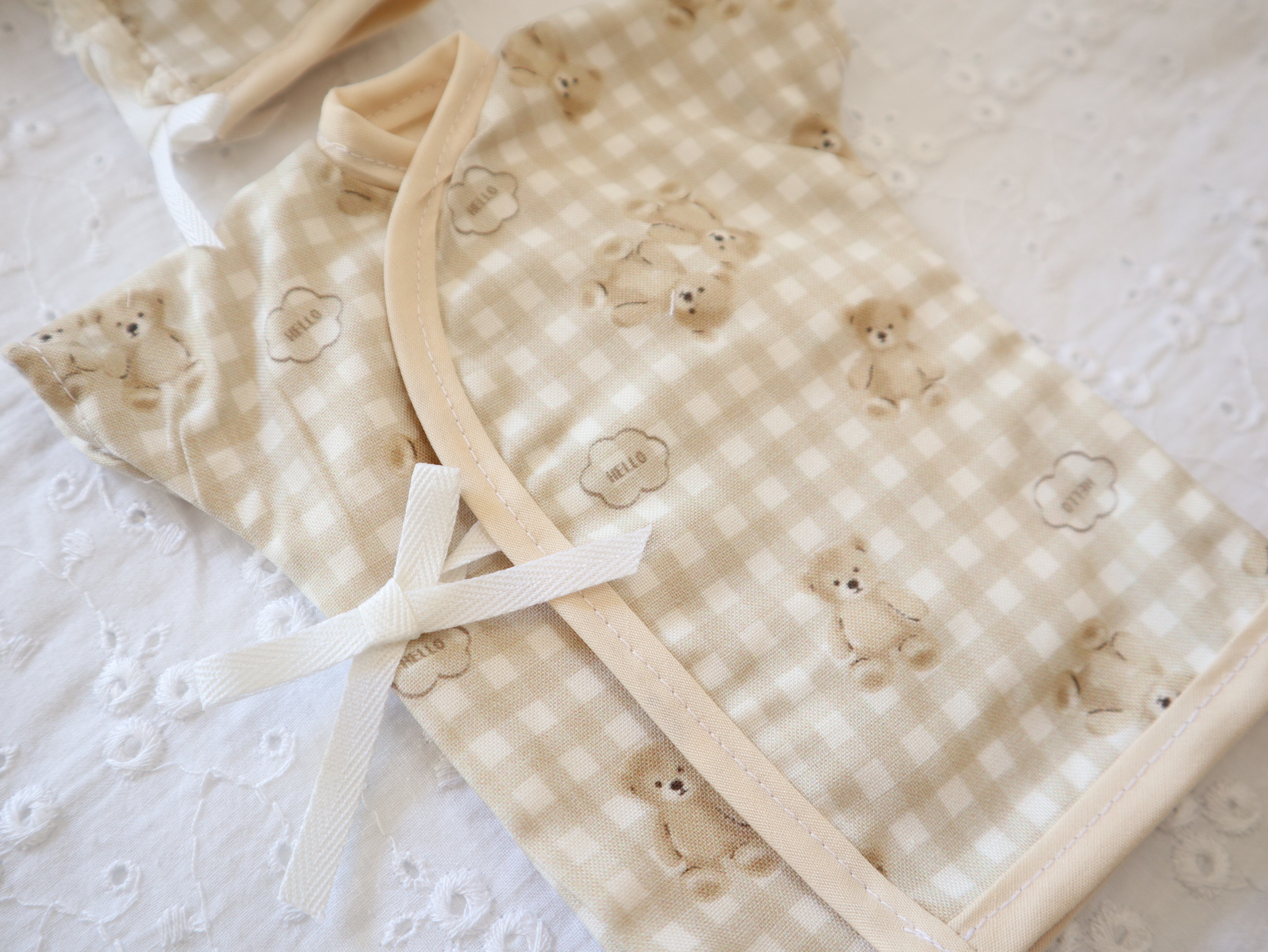 ・肌着(ダブルガーゼ、ブラウンチェックくま)