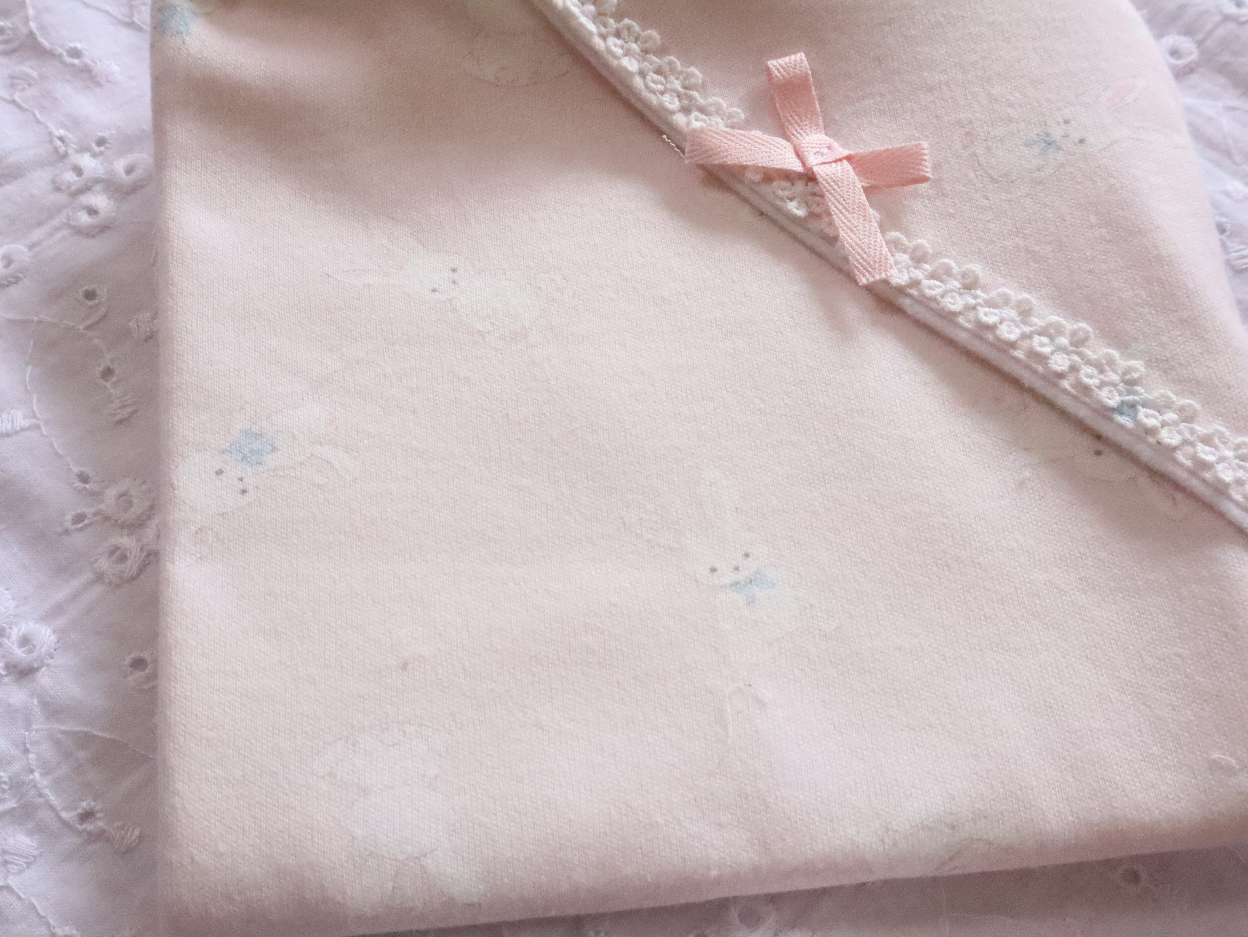 ・おくるみ(スムースニット、ベビーピンクうさぎ柄、フランネル)