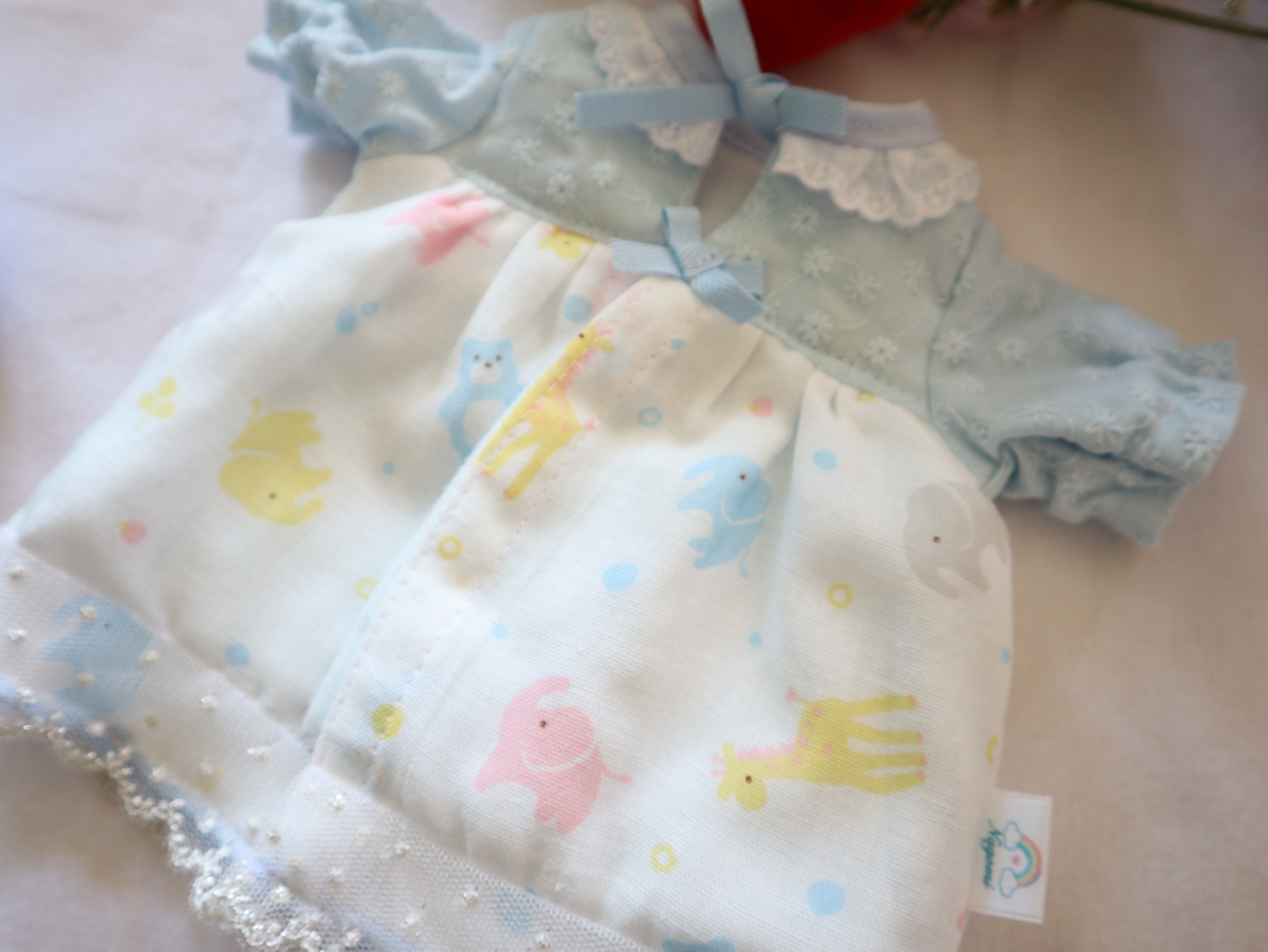 ・ベビードレス(表…ブルーとどうぶつ柄、裏…フランネル)