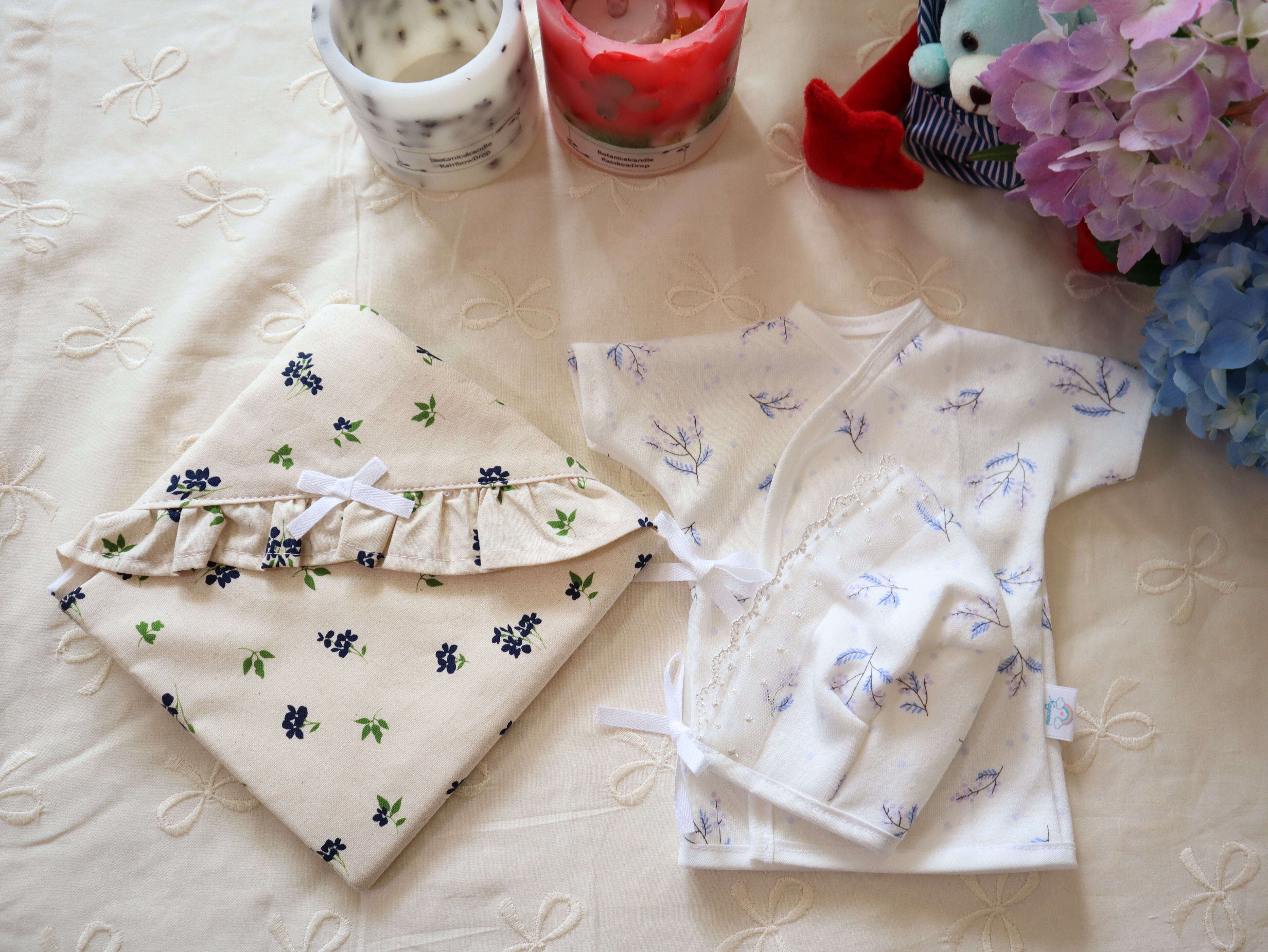 肌着はスムースニット保温性に優れております。小さな赤ちゃんの急な乾燥・体温低下をなるべく抑えられるよう配慮しております。