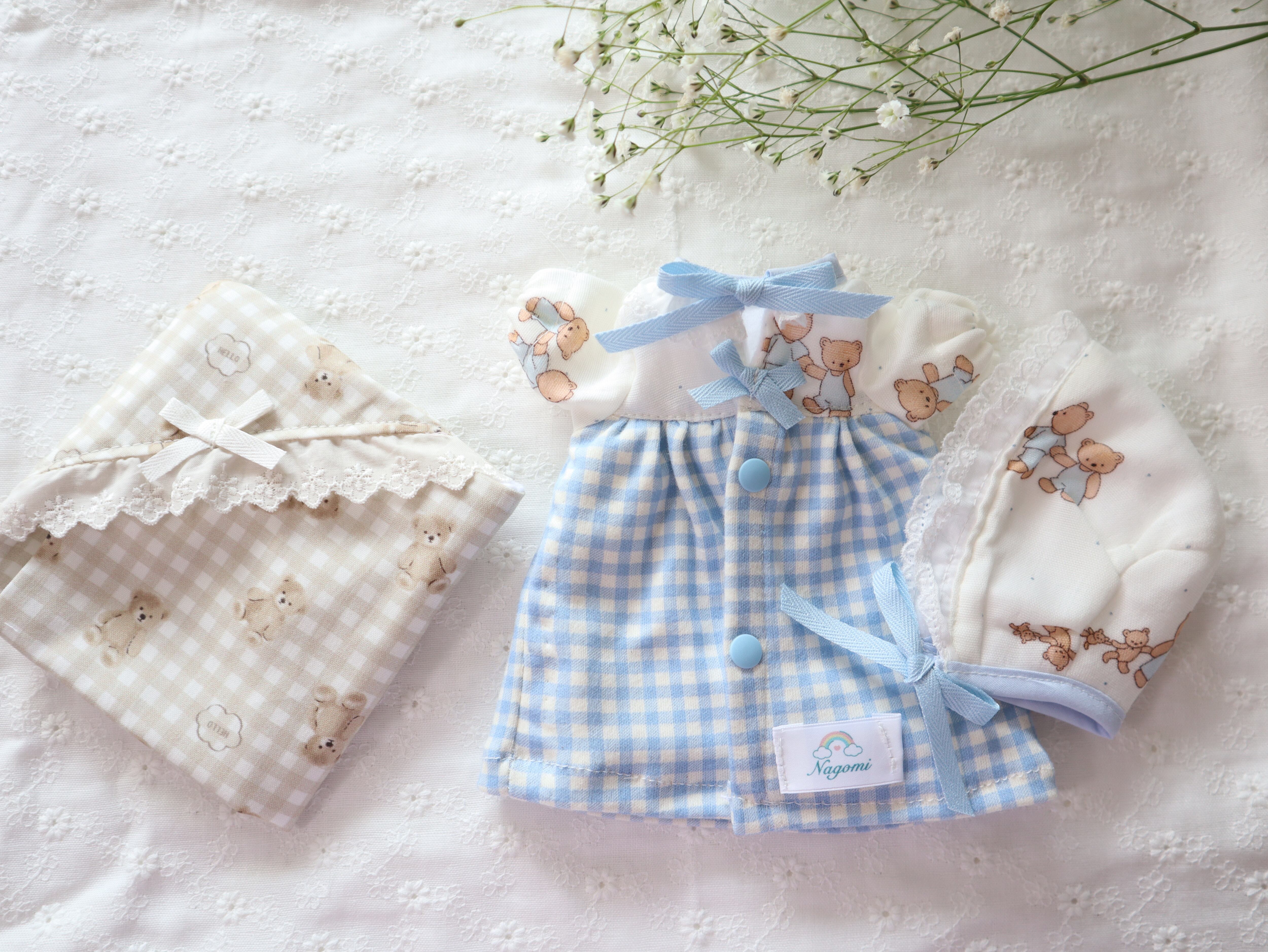 ・おくるみ(表…コットンガーゼ、ブラウンくまギンガムチェック、裏…フランネル)