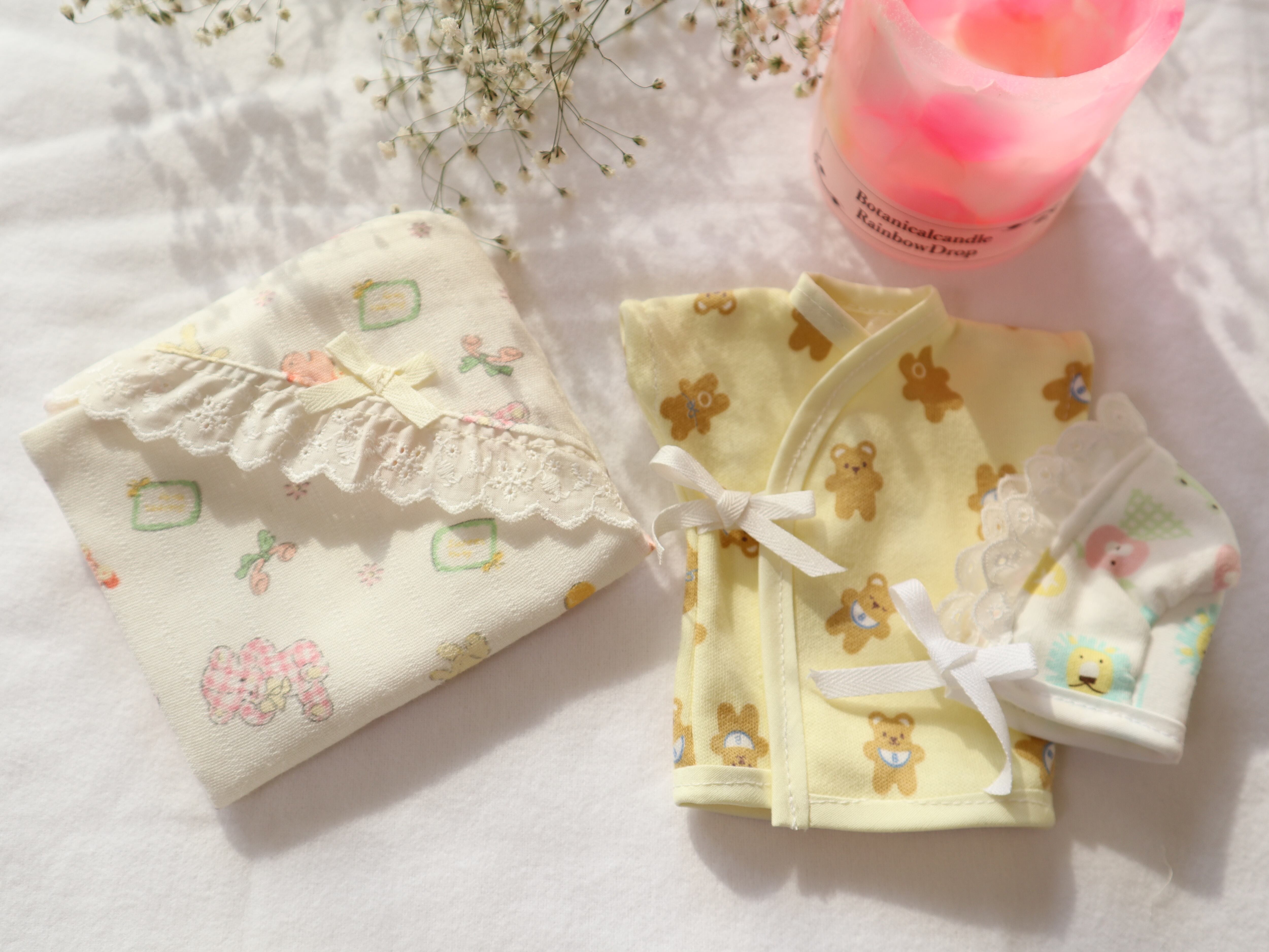 ・おくるみ(コットンガーゼ、フランネル、お花とくま柄)