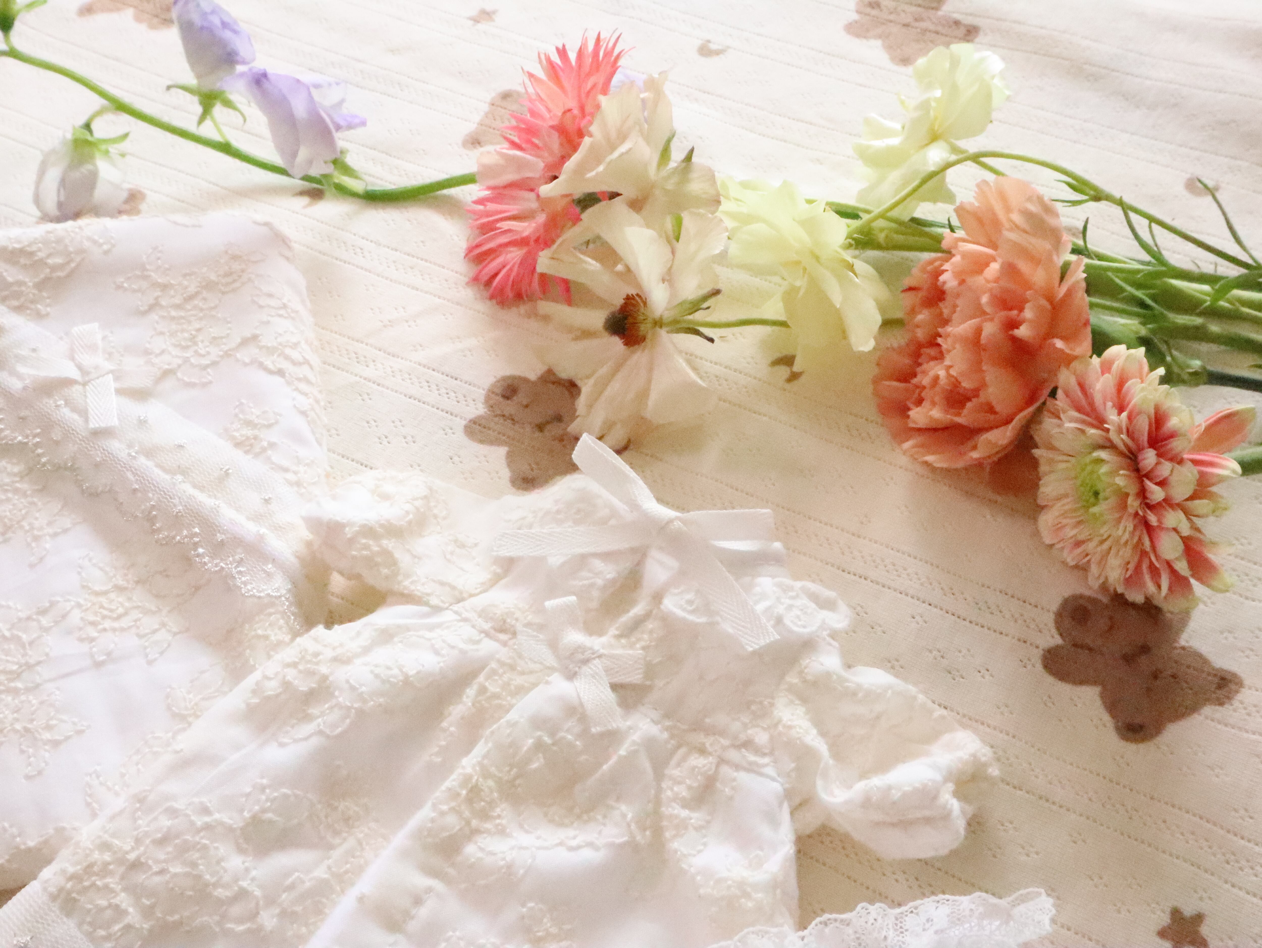 ・ベビードレス(表…ダブルガーゼ、レース、裏…フランネル)