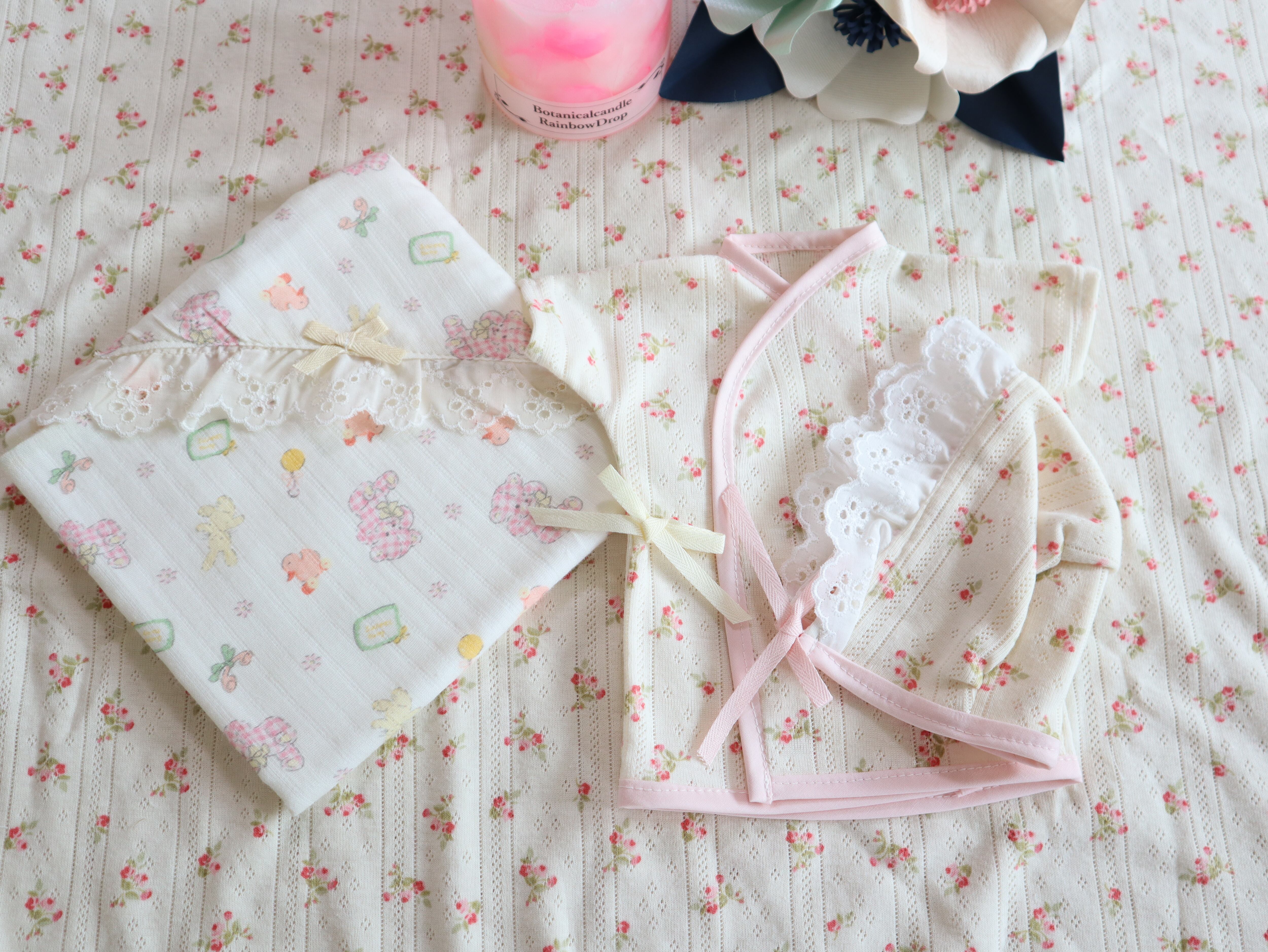 ・おくるみ(コットンガーゼ、フランネル、ピンクのくま柄)