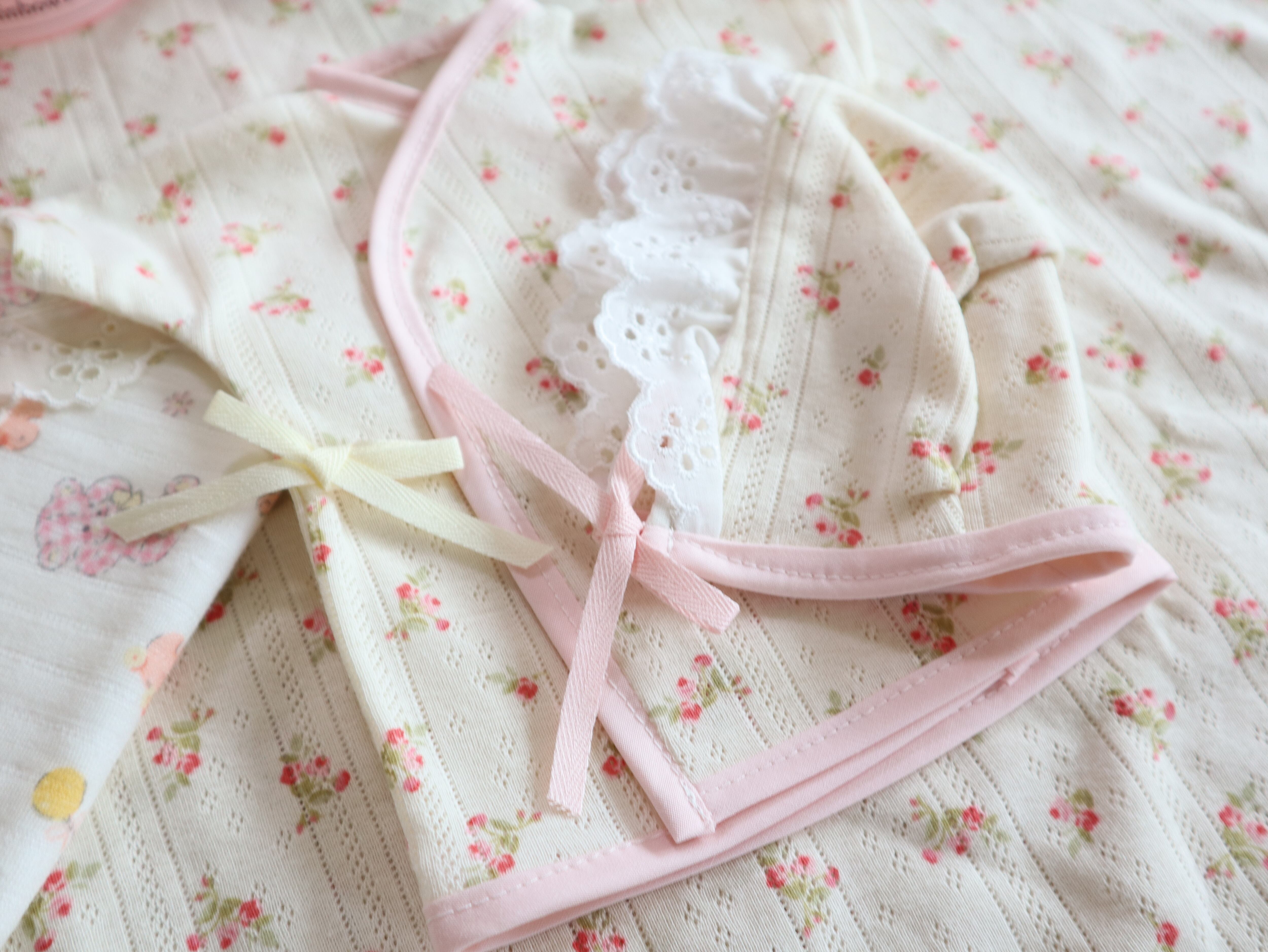 ・ベビー肌着(スムースニット、アイボリー花柄)