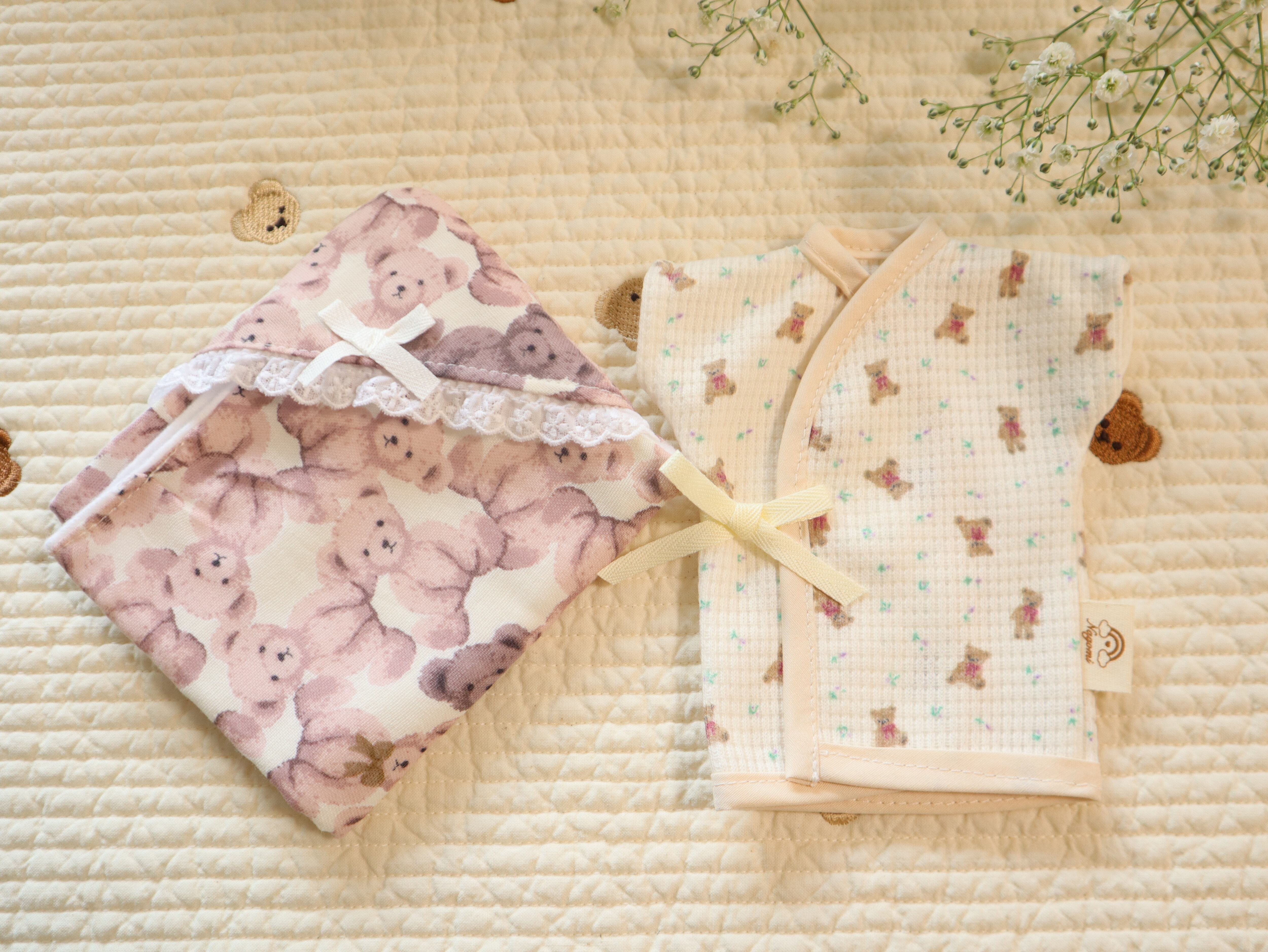 ・おくるみ(ダブルガーゼ、ピンクのクマ柄)