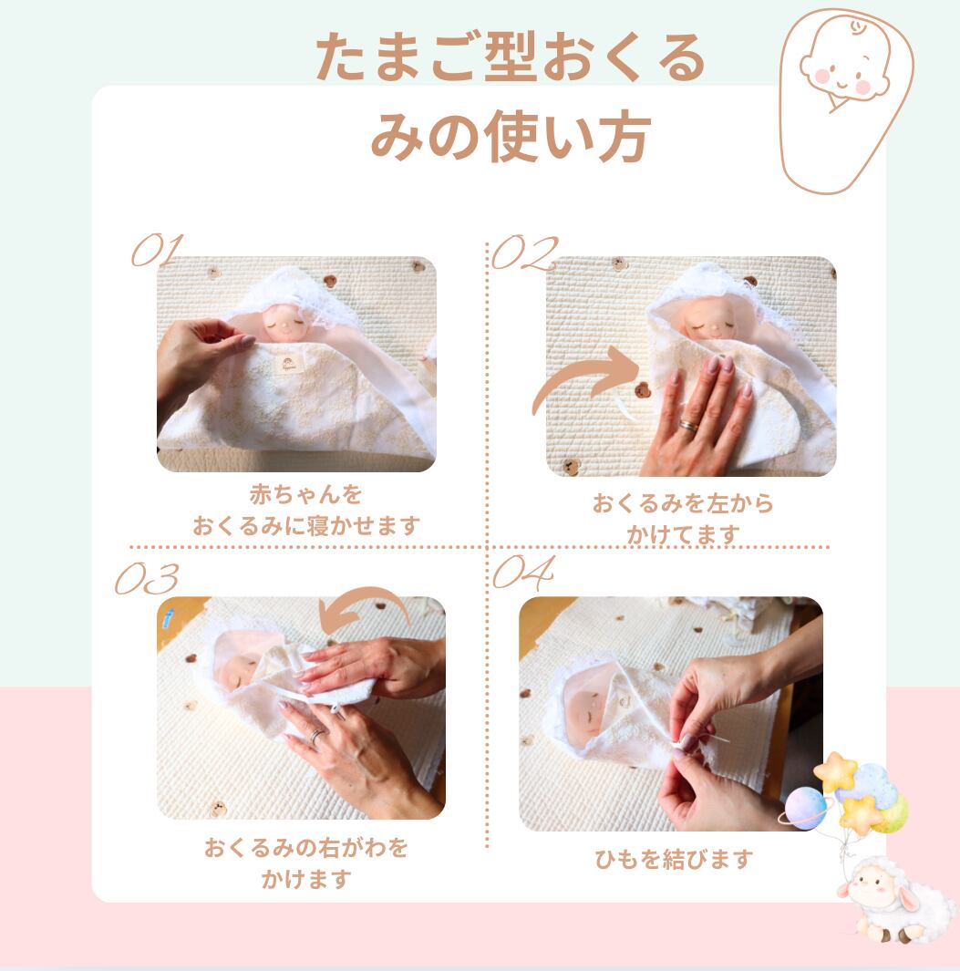 ・たまご型おくるみ(シーチング、フランネル、くまとさくらんぼ柄)