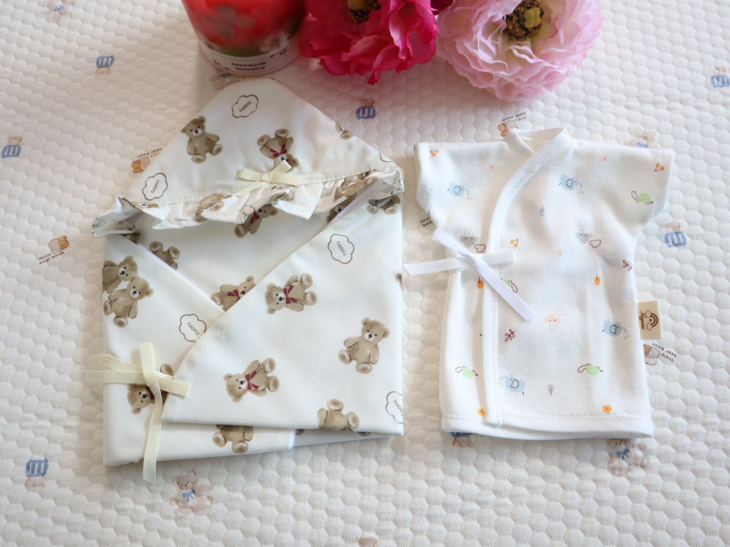 ・たまご型おくるみ(シーチング、フランネル、くま柄)